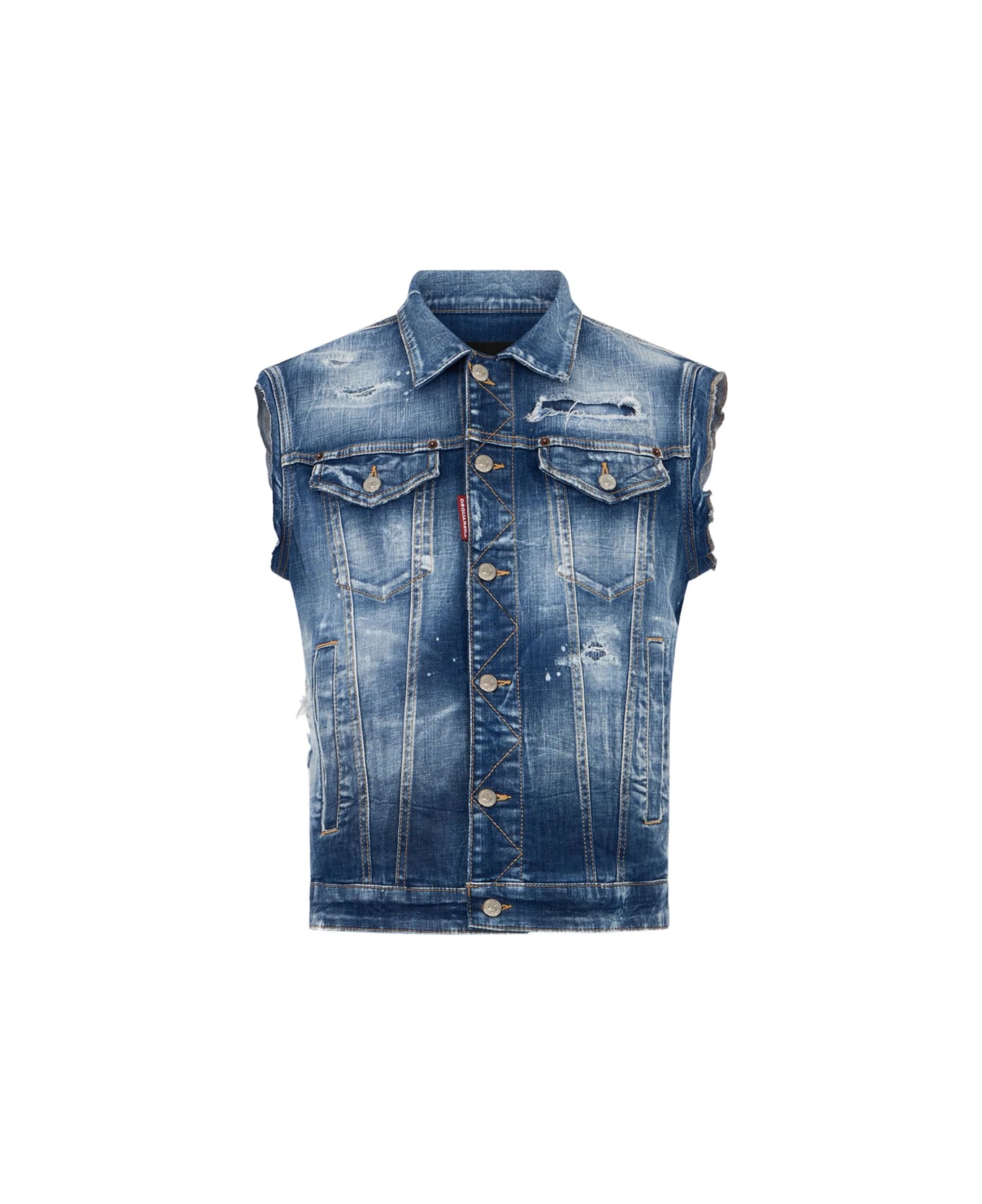blue raw-cut hem chest flap pockets button fastening collar distressed effect