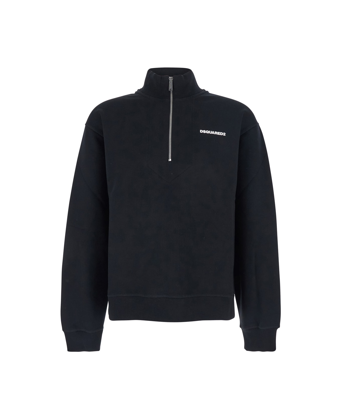 Black High Neck Sweatshirt With Lettering Logo On The Front In Cotton Man