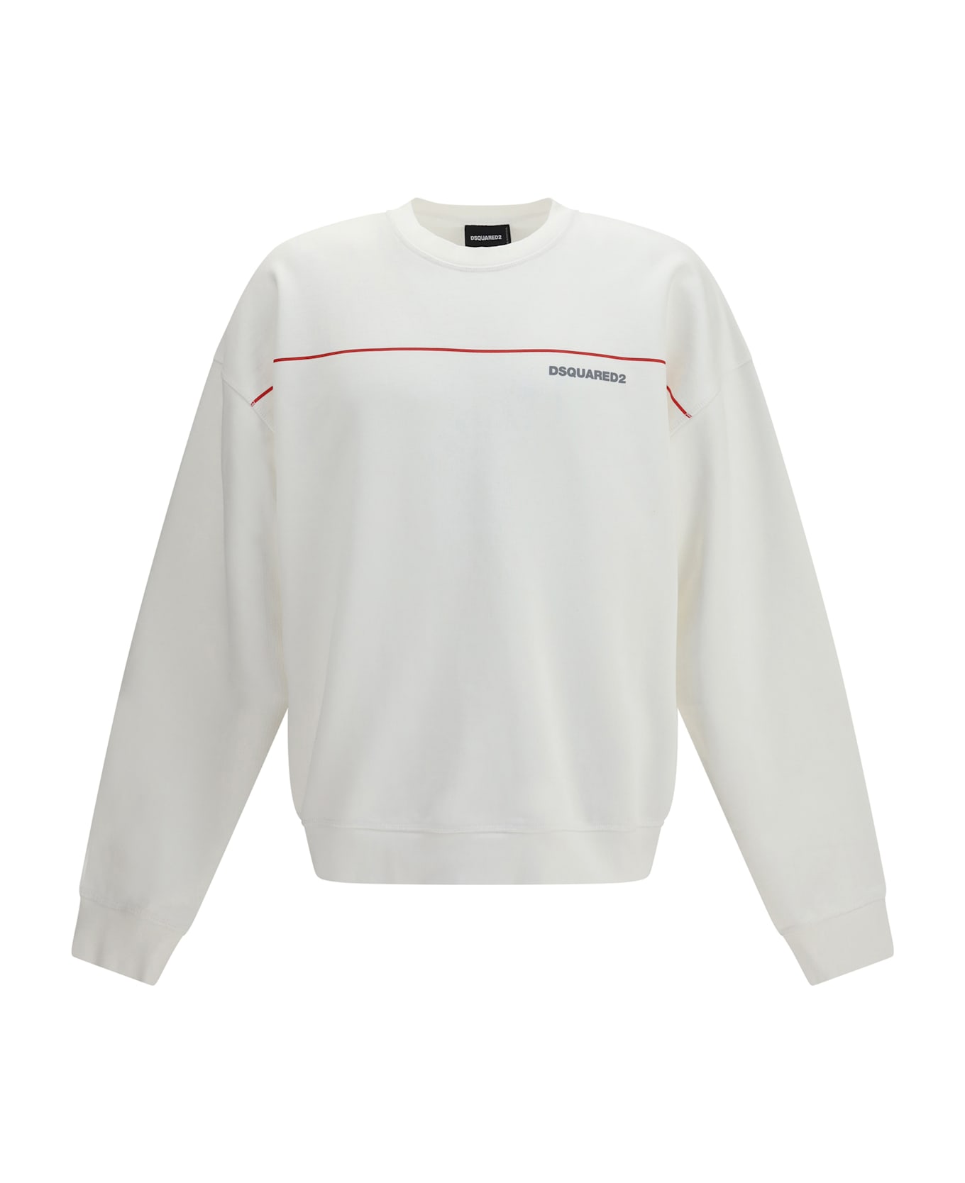 The cotton crew neck sweatshirt with logo print by dsquared2 stands out for an essential silhouette that interprets casual style with a bold attitude. the cotton sweatshirt model by dsquared2 features a crew neck and long sleeves that define the structure of the garment. the logo print on the front introduces a distinctive graphic element. the cotton crew neck sweatshirt with logo print by dsquared2 completes the design with a clean and contemporary silhouette.