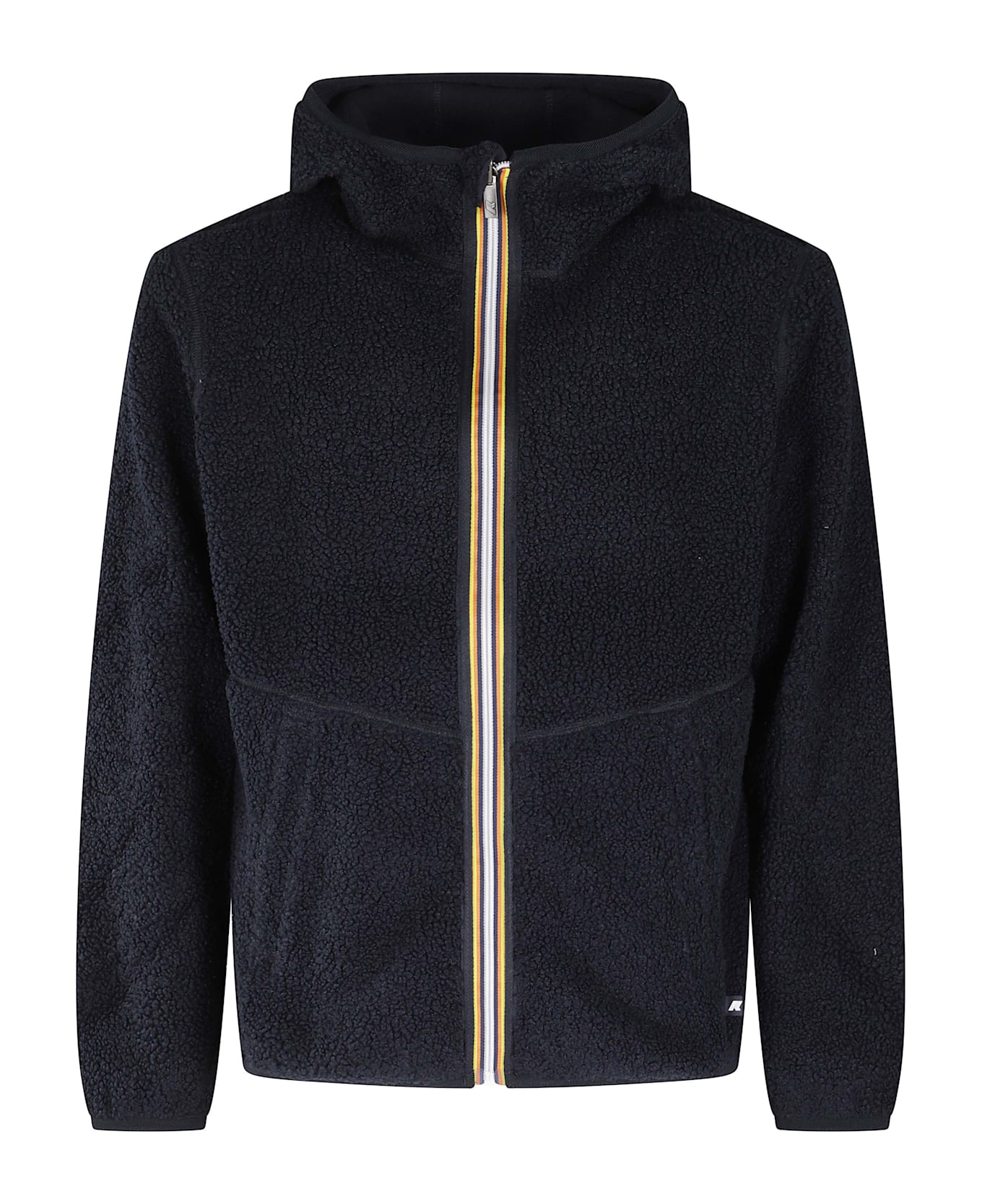 Jack Sherpa sweatshirt - K-Way - Blue color - Double face sherpa and fleece fabric - Hood - Long sleeve with elastic cuff - Front zipper closure