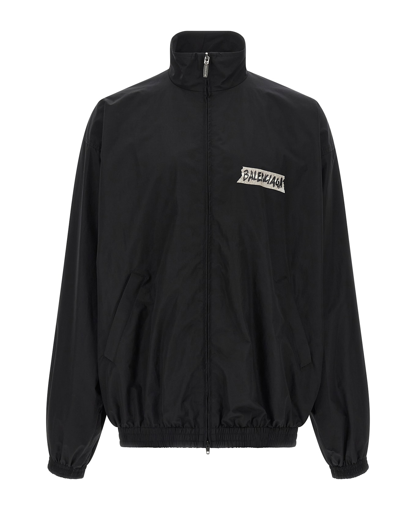 Tech cotton poplin sweatshirt, mesh lining, 'Masking Tape' print on the front and back, high neck, front zip closure, pockets, long sleeves with elastic cuffs and dropped shoulders, elastic hem. Composition: 50% cotton 50% polyamide
