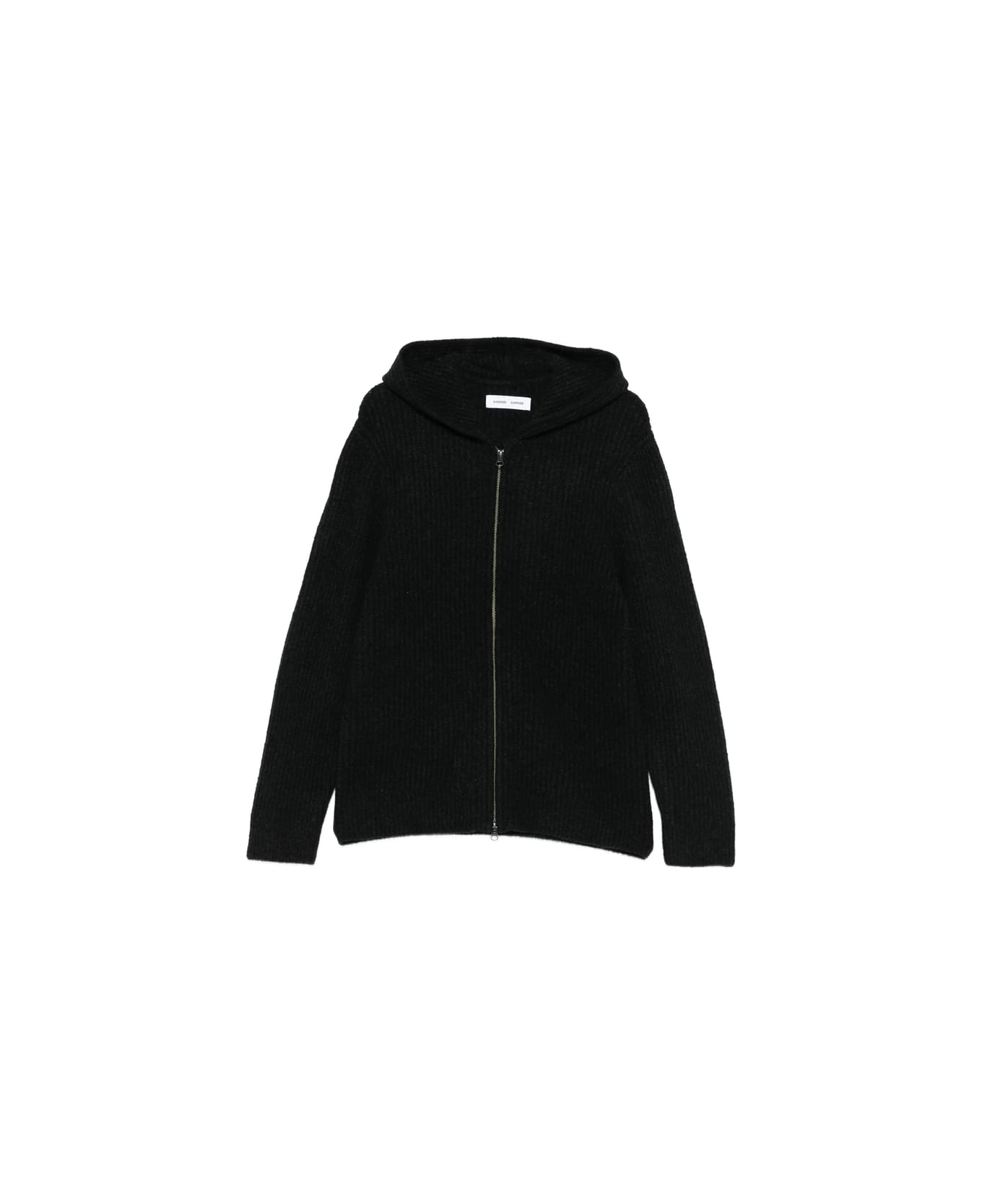 black front zip fastening classic hood long sleeves ribbed knit