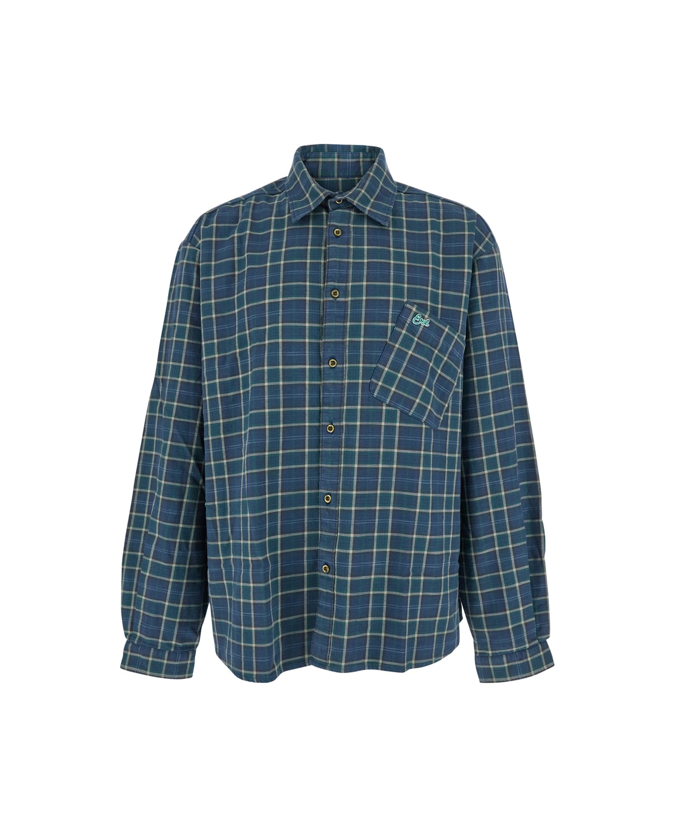 Green Shirt With Check Pattern And Logo Lettering On The Back In Flannel Man
