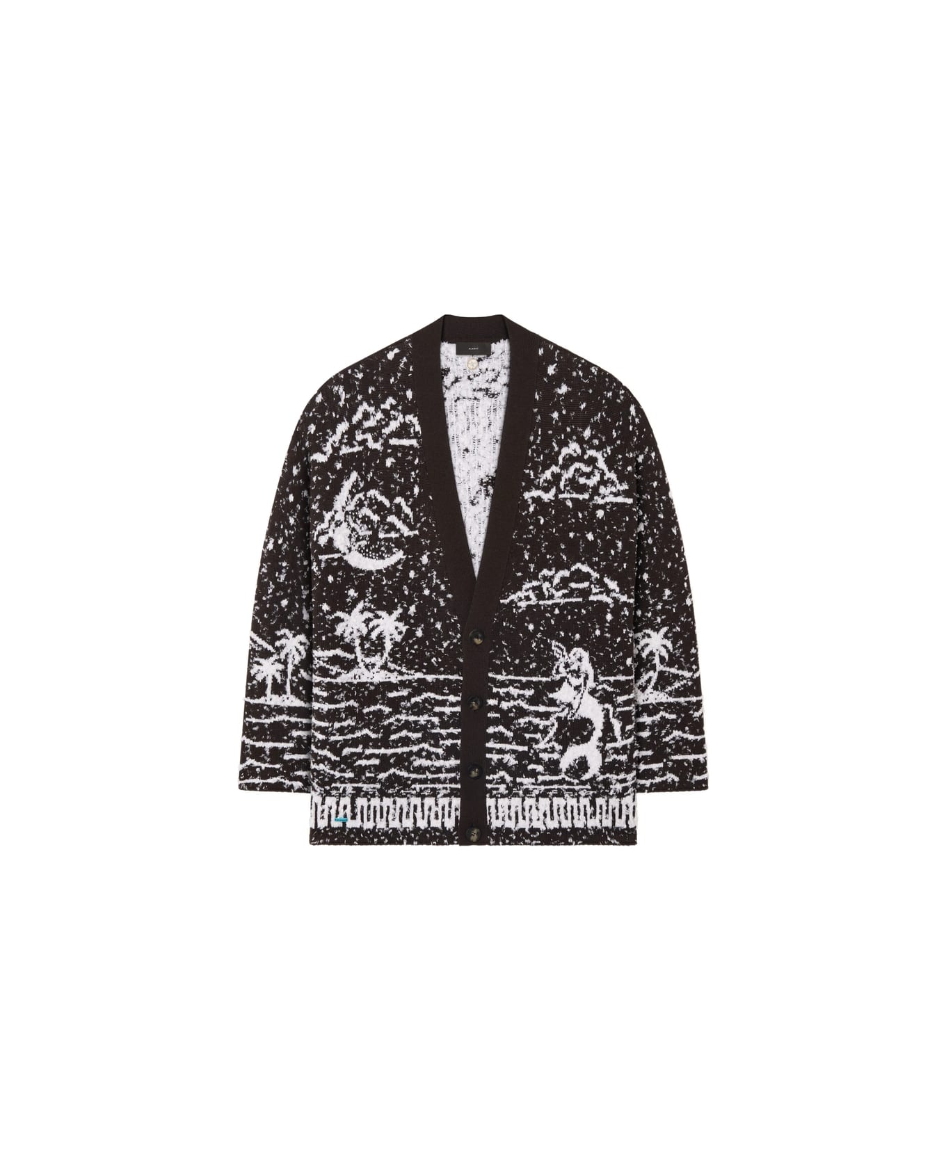 black palm tree graphic front button fastening V-neck ribbed hem ribbed cuffs