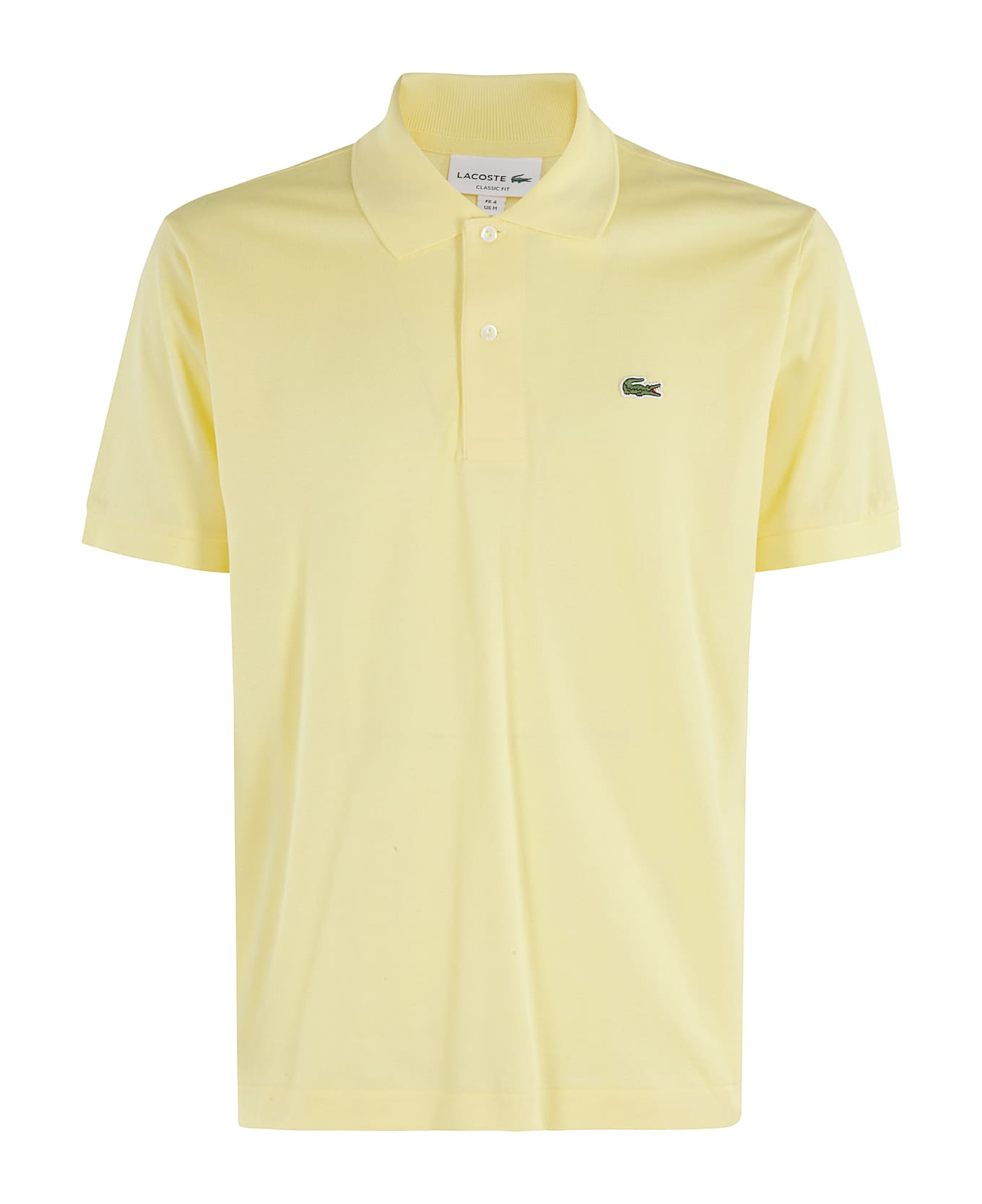 Classic polo shirt - Lacoste - Yellow color - Cotton pique fabric - Polo collar with buttons - Short sleeve - Applied logo patch on chest - Regular fit