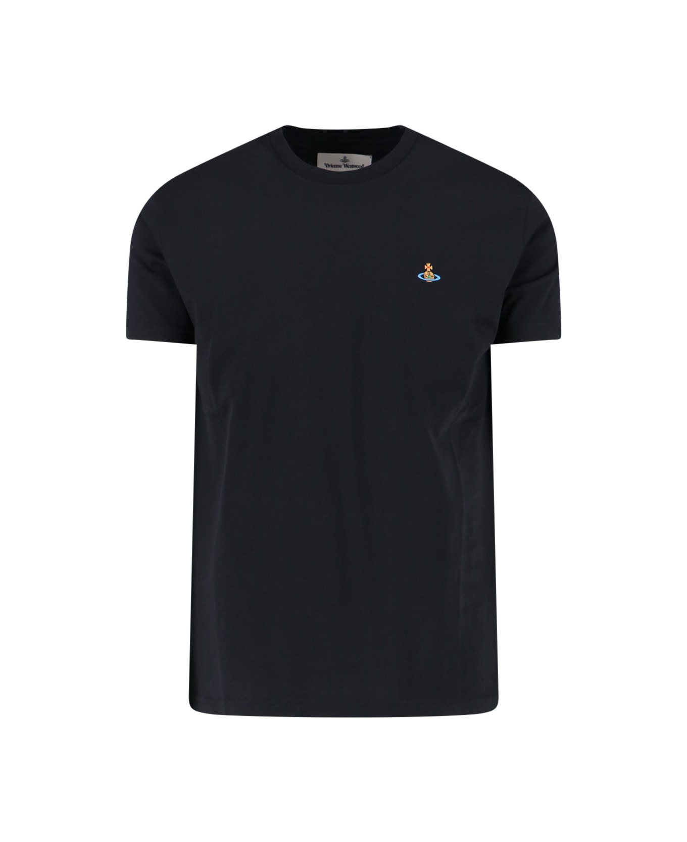 Vivienne Westwood 'Orb' logo T-shirt in black cotton with crew neck, short sleeves, multicolor logo embroidery on the chest, straight hem.