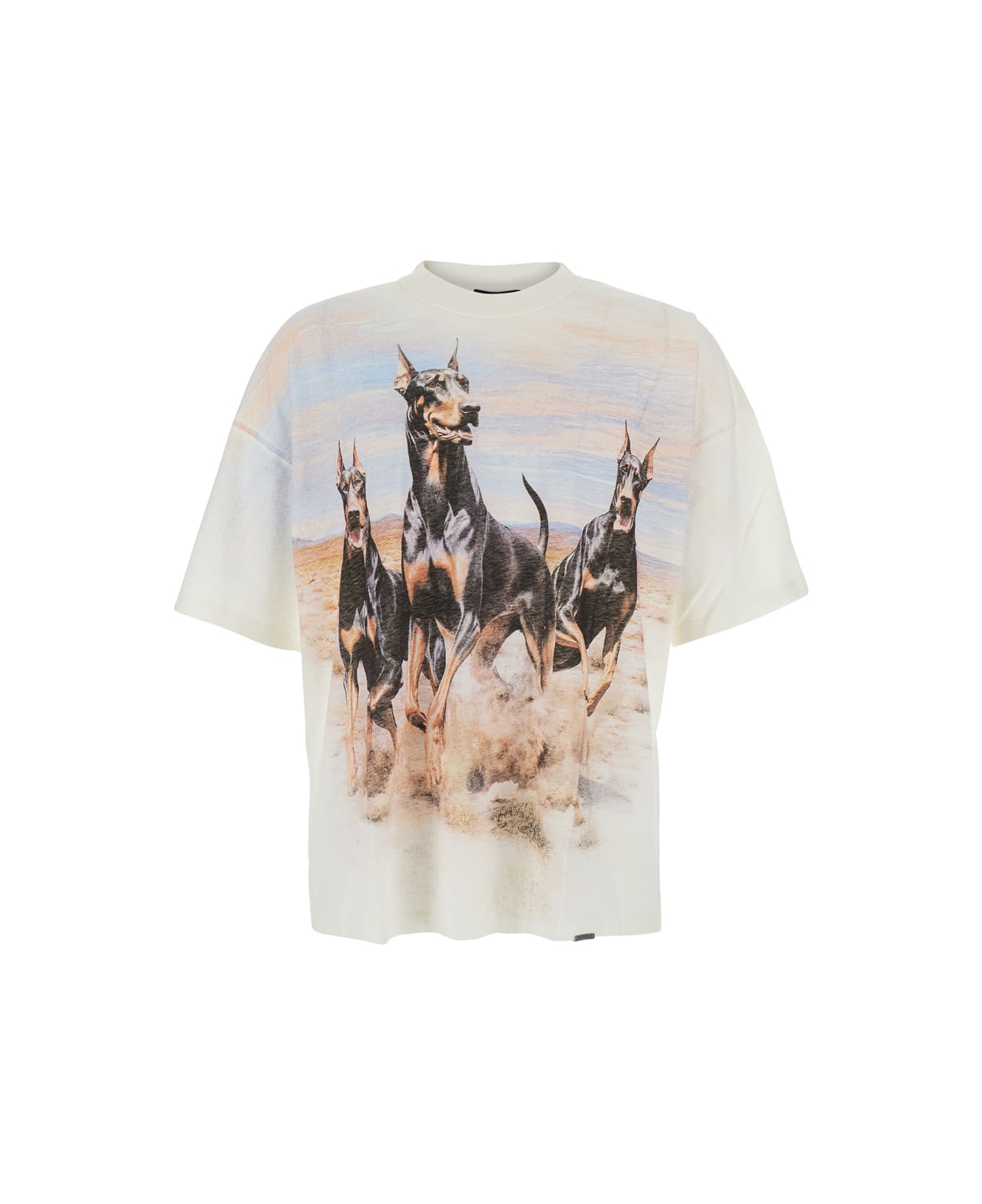 White T-shirt With 'wester Dobermans' Print On The Front In Cotton And Hemp For Men