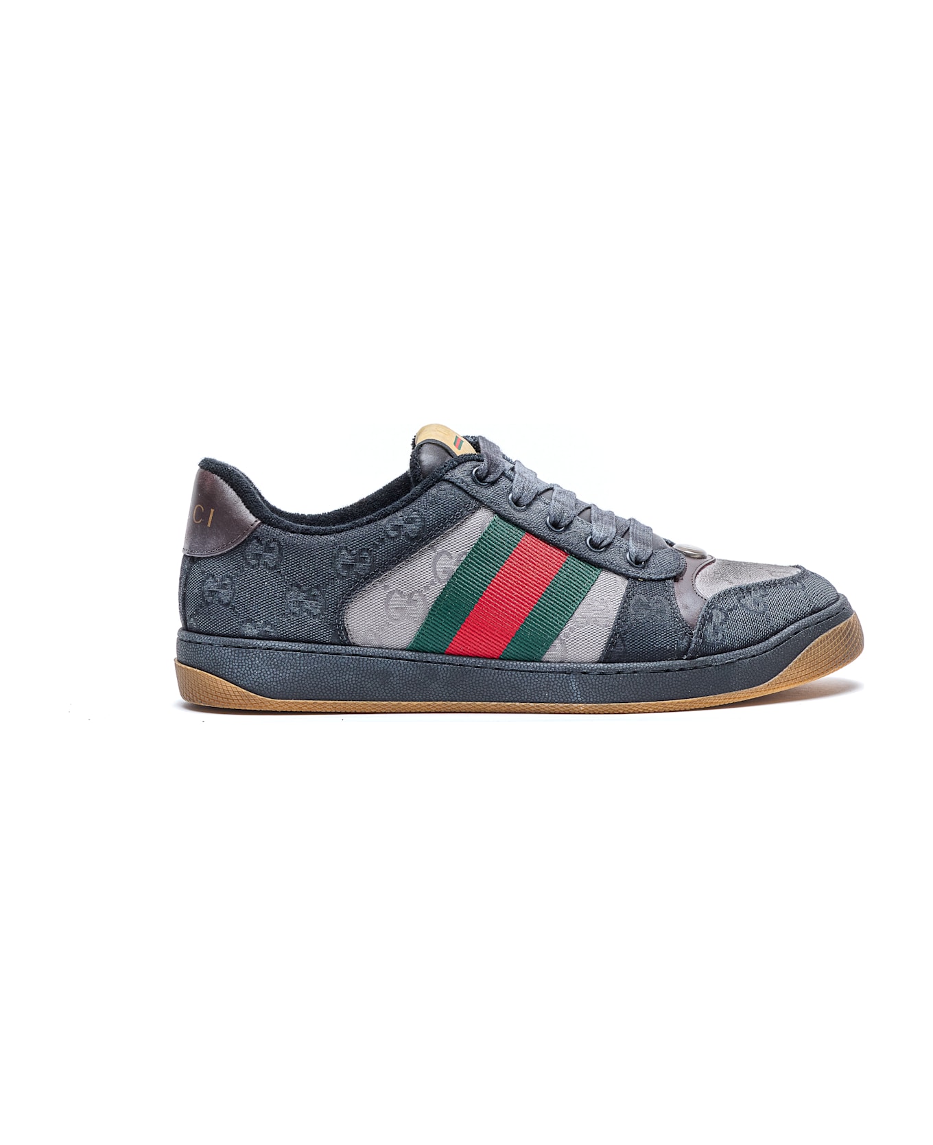Gucci blue Screener sneakers, round toe, tone on tone logo allover, laces closure