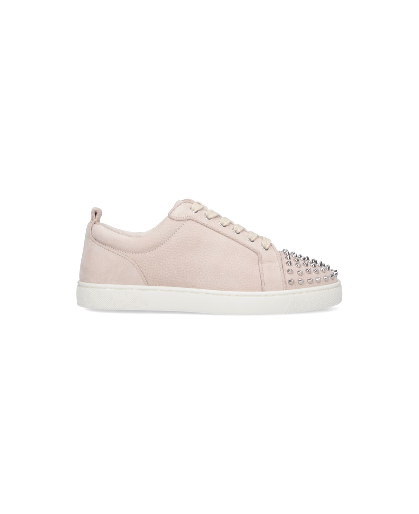 Sneakers "Louis Junior Spikes" Christian Louboutin in beige calfskin, round toe, lace-up closure, metal "Spikes" on the front, rubber sole. Composition: 87. , 23% Calfskin, 4. , 6% Viscose, 8. , 17% Cotton