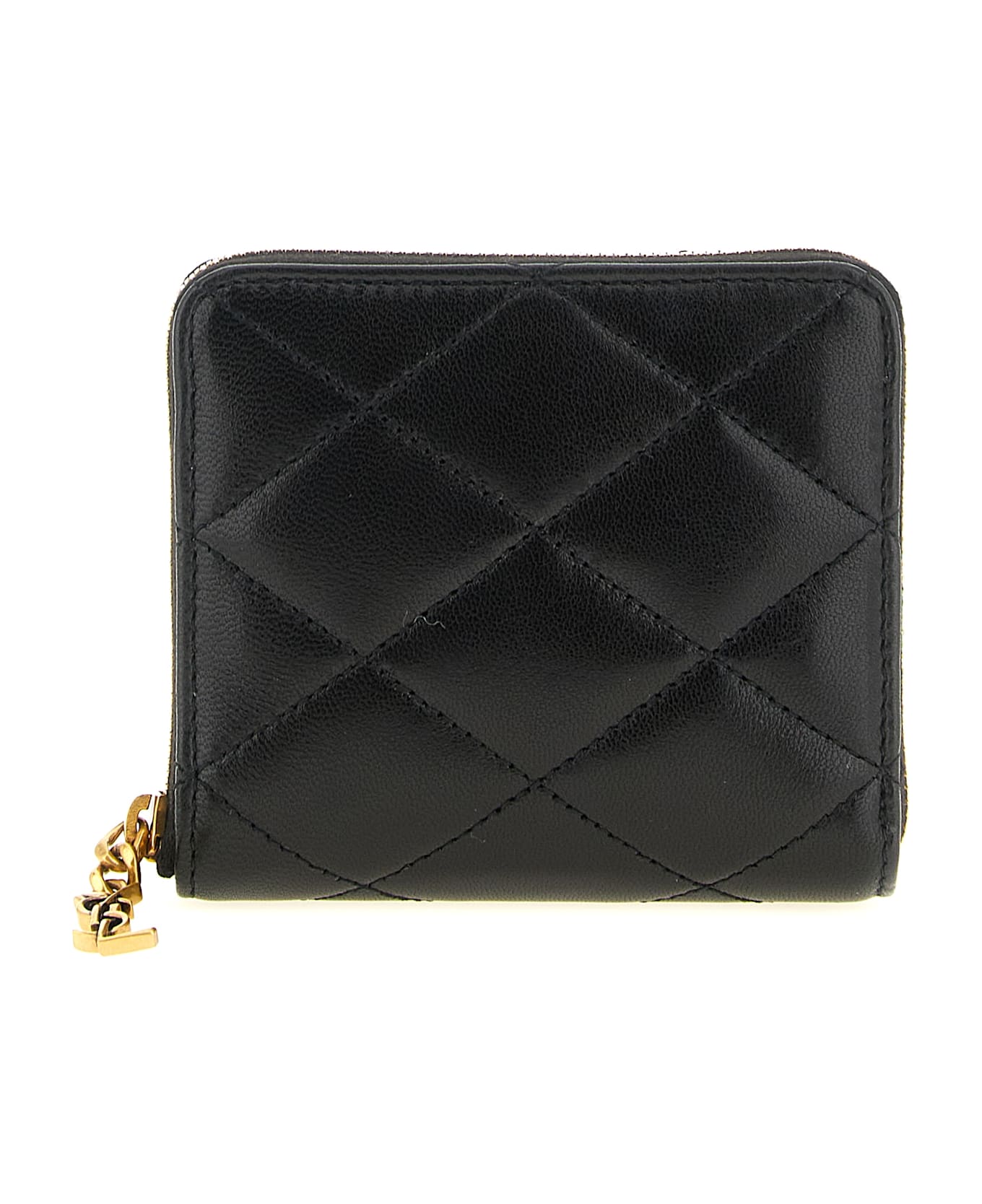 'Pegaso' leather wallet with quilted check stitching, zip closure with zipper puller and antiqued metal 'Cassandre' logo.