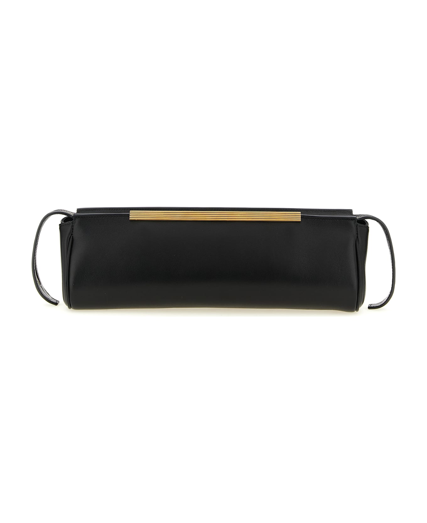 'Donna Evening' clutch in soft nappa lambskin leather, elongated east-west silhouette, panel construction with side gussets, front 'Empire' metal detail, top zip closure, back embossed logo.
