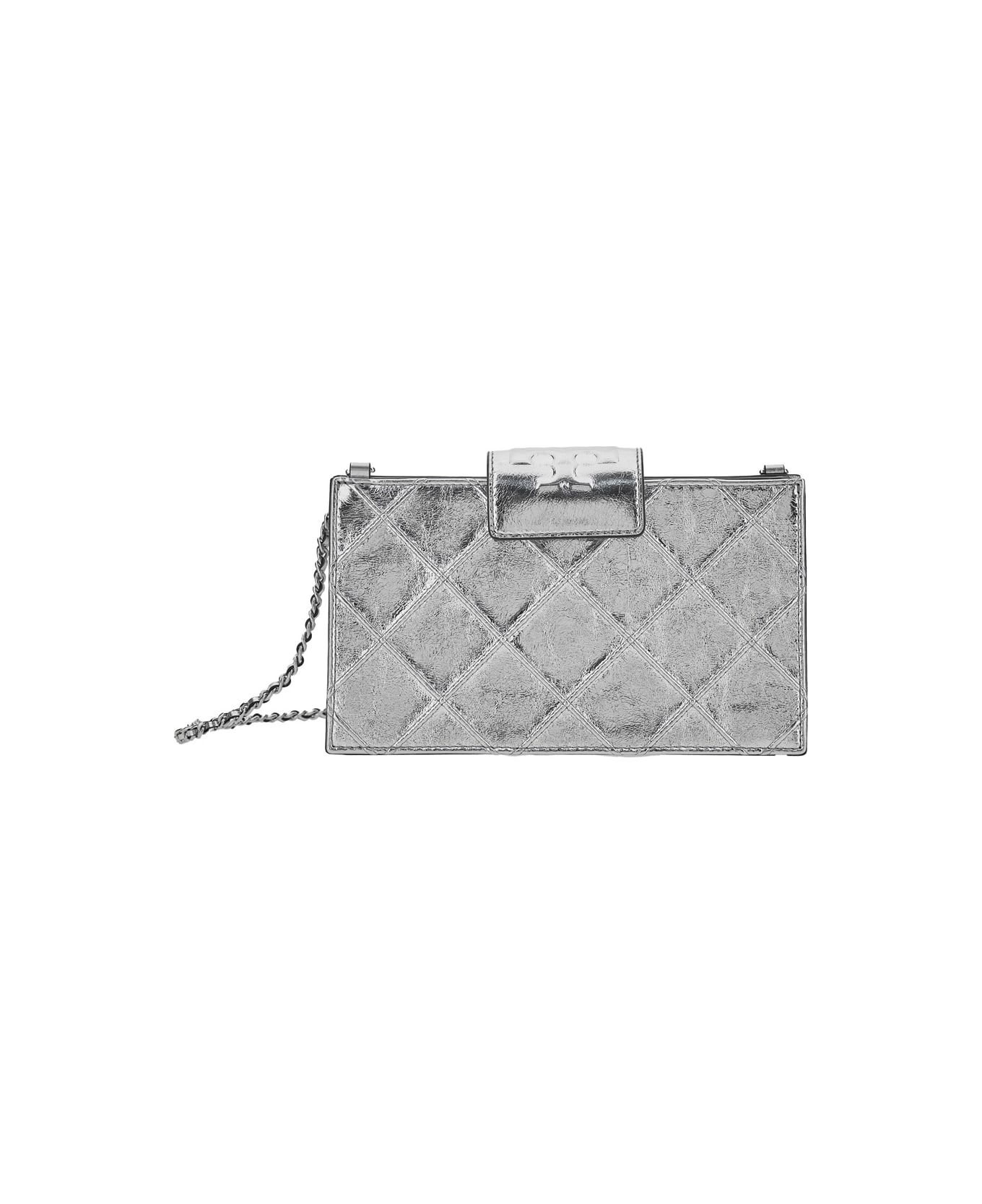 Shoulder bag Metallic color Chain strap with woven leather Zip closure with magnetic tab Quilted design Single compartment Internal card slot Leather Dimensions: 20 x 11. 5 x 3 cm Shoulder strap height: 54 cm
