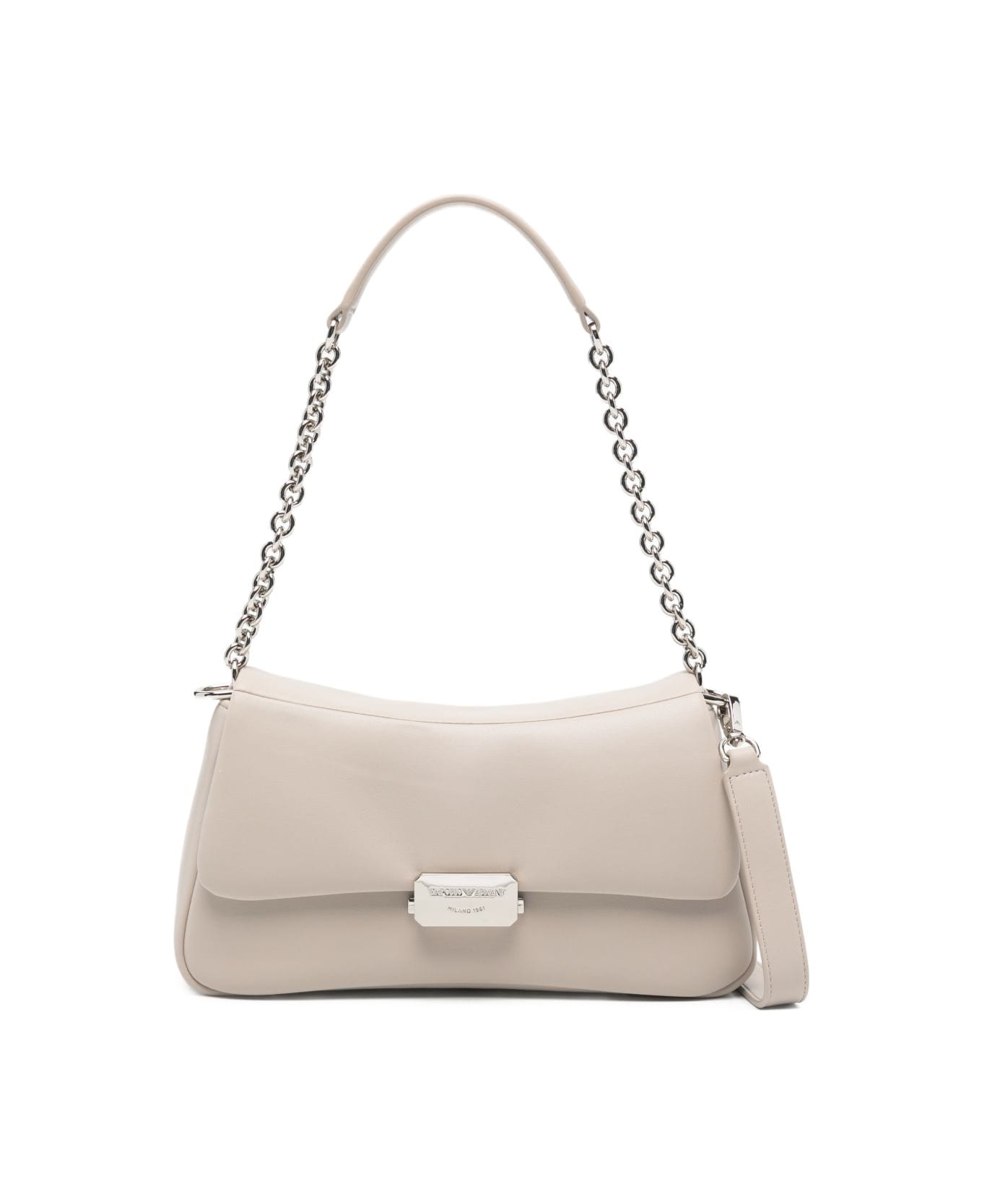 light beige chain top handle detachable adjustable shoulder strap silver-tone logo plaque foldover top internal slip pocket This piece comes complete with a protective dust bag. Composition: 100% Bovine Leather