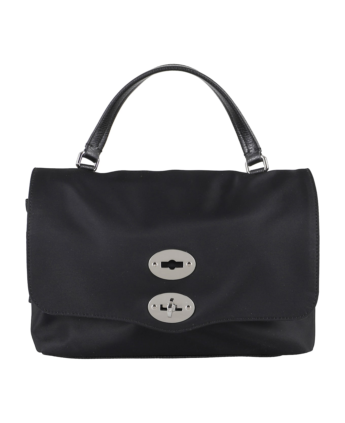 Tokyo S Postina bag - Zanellato - Black color - Made of nylon - Double internal compartment - Leather top handle - Adjustable and removable leather shoulder strap - Double swivel flap closure - Dimensions: 29 x 20 x 15 cm.