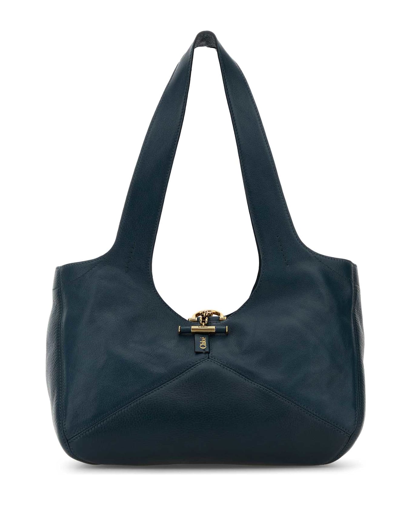 Navy Blue Leather East-west Chloã© Balloon Shoulder Bag