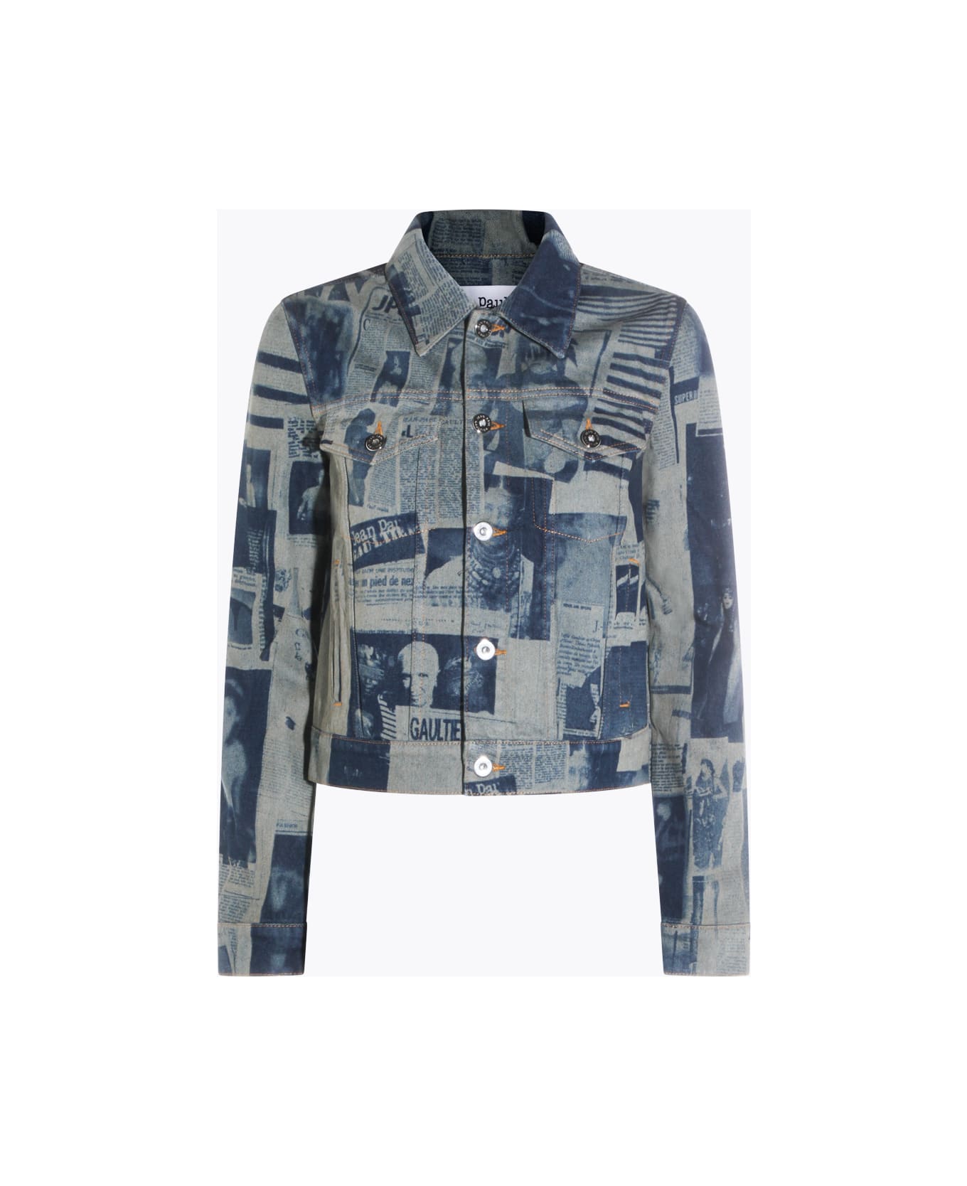 Indigo and beige denim jacket from Jean Paul Gaultier featuring vintage effect, long sleeves, button closure at front, side pockets and regular fit.