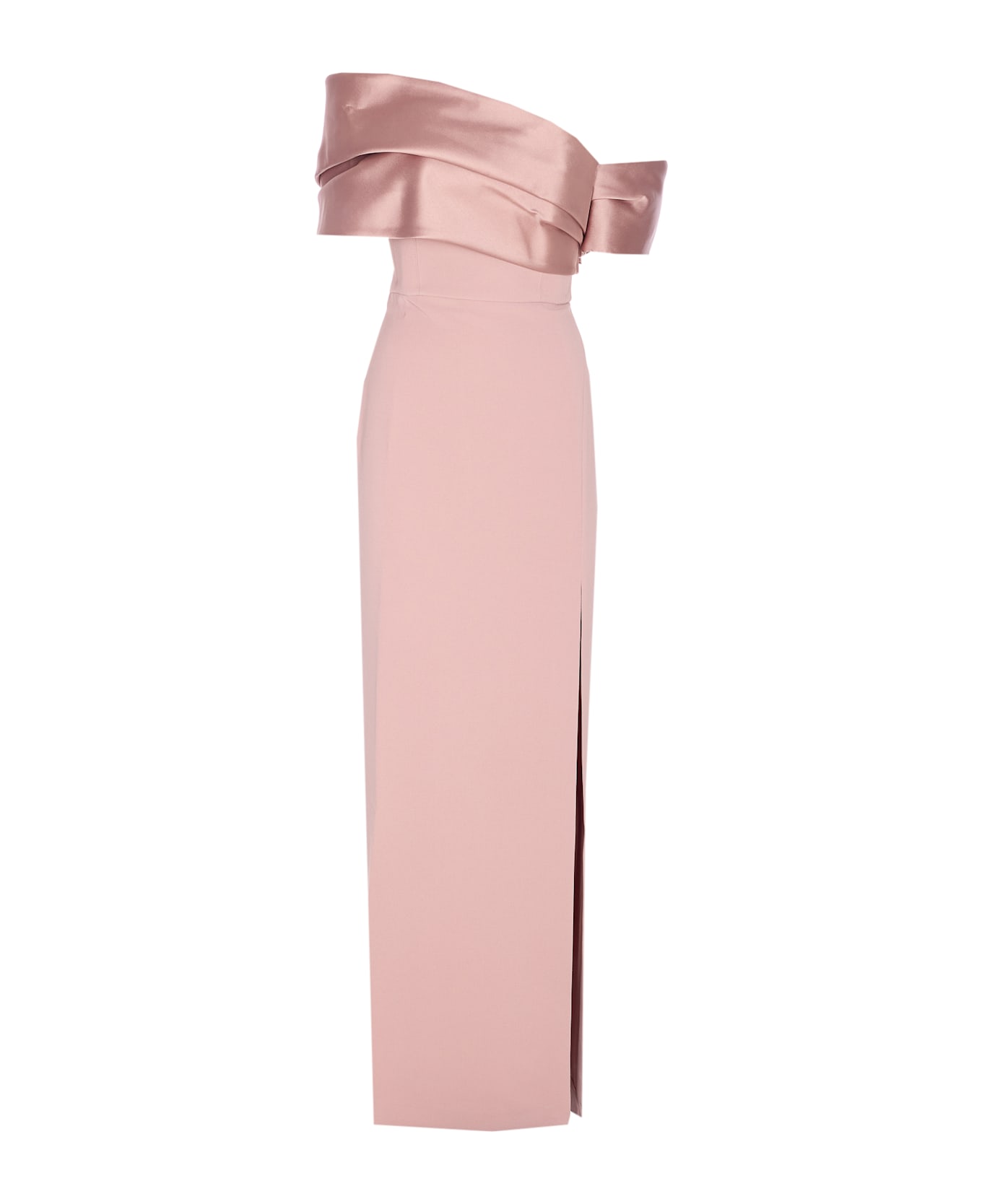 Solace London oyster Alexis maxi dress, zip and hook closure on side, long model, rouches on collar, one shoulder, maxi split detail on side Composition: 100% Polyester, 95% Polyster, 5% Elastane