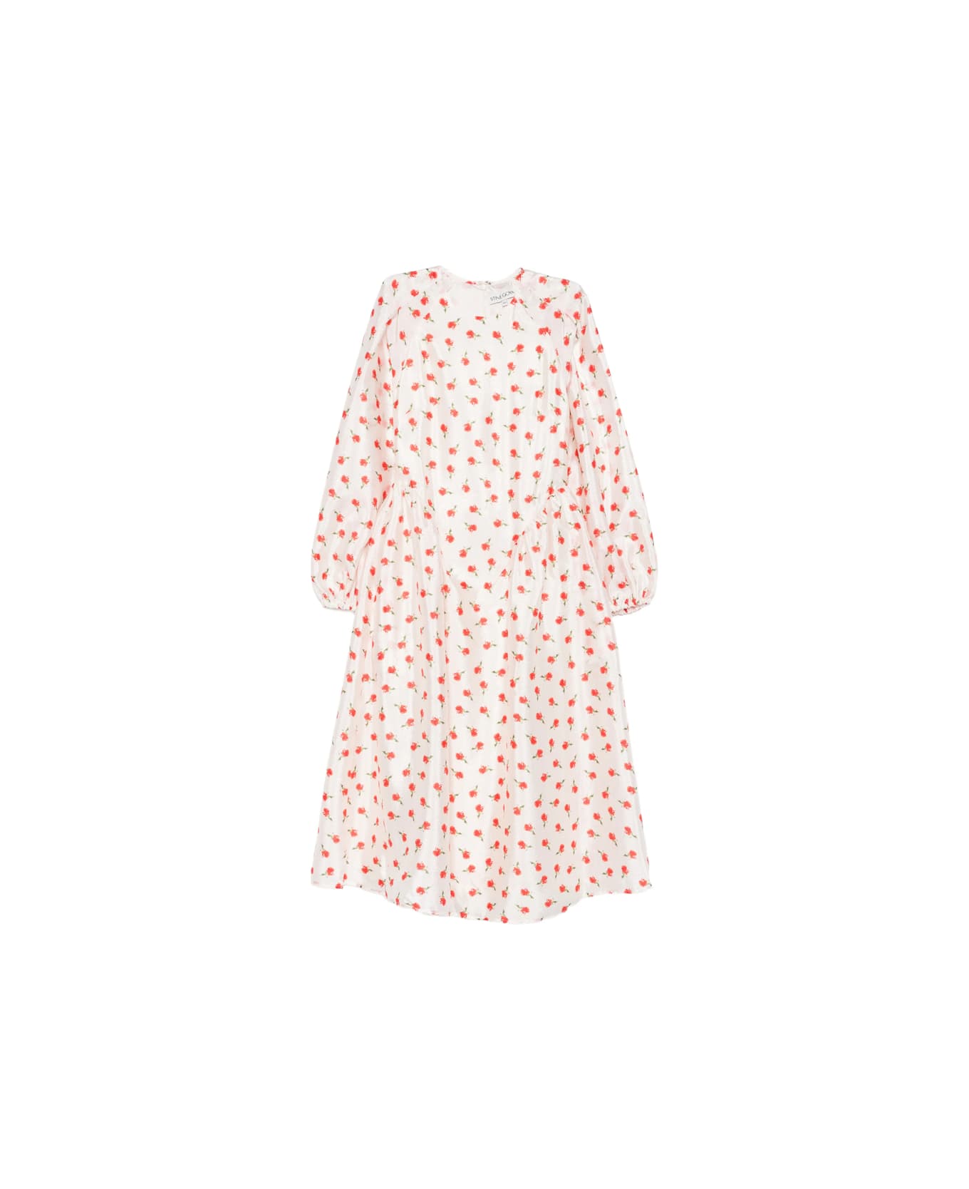 off-white floral print long sleeves gathered waist round neck elasticated cuffs