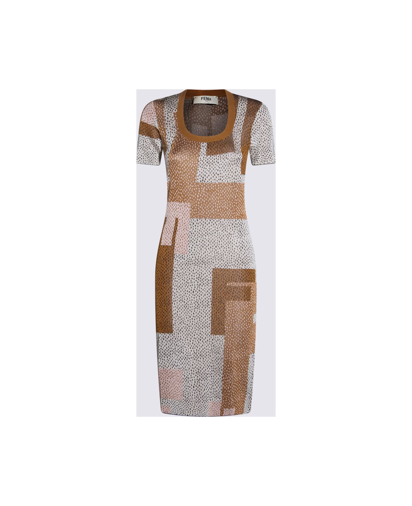 Multicolor viscose dress from Fendi featuring round collar, short sleeves and midi lenght. Composition: _, 90% Viscose, 8% Polyamide, 2% Polyester