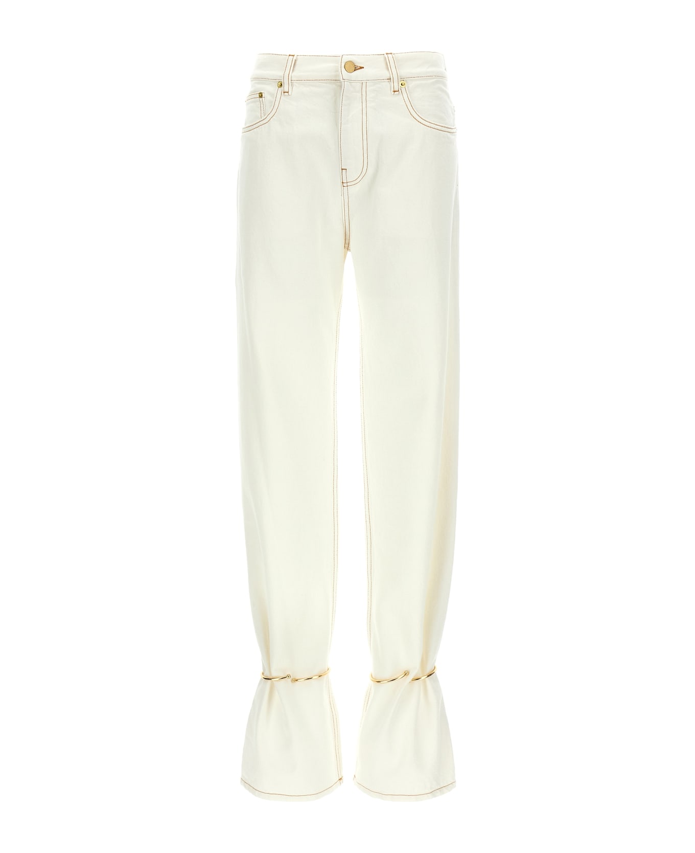 'Marion' jeans in garment-dyed cotton denim with contrast stitching, straight leg, adjustable and removable metal bracelet detail at the hem, front zip and button closure, five pockets, back logo tag.