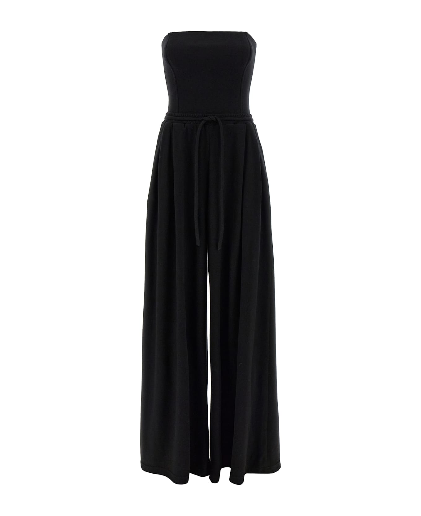 One-piece suit in wool-effect silk blend cloth, consisting of corset with slats and joggers with wide and straight leg, drawstring at the waist, side pockets, back closure with zip and hook. Composition: 68% acetate, 32% silk
