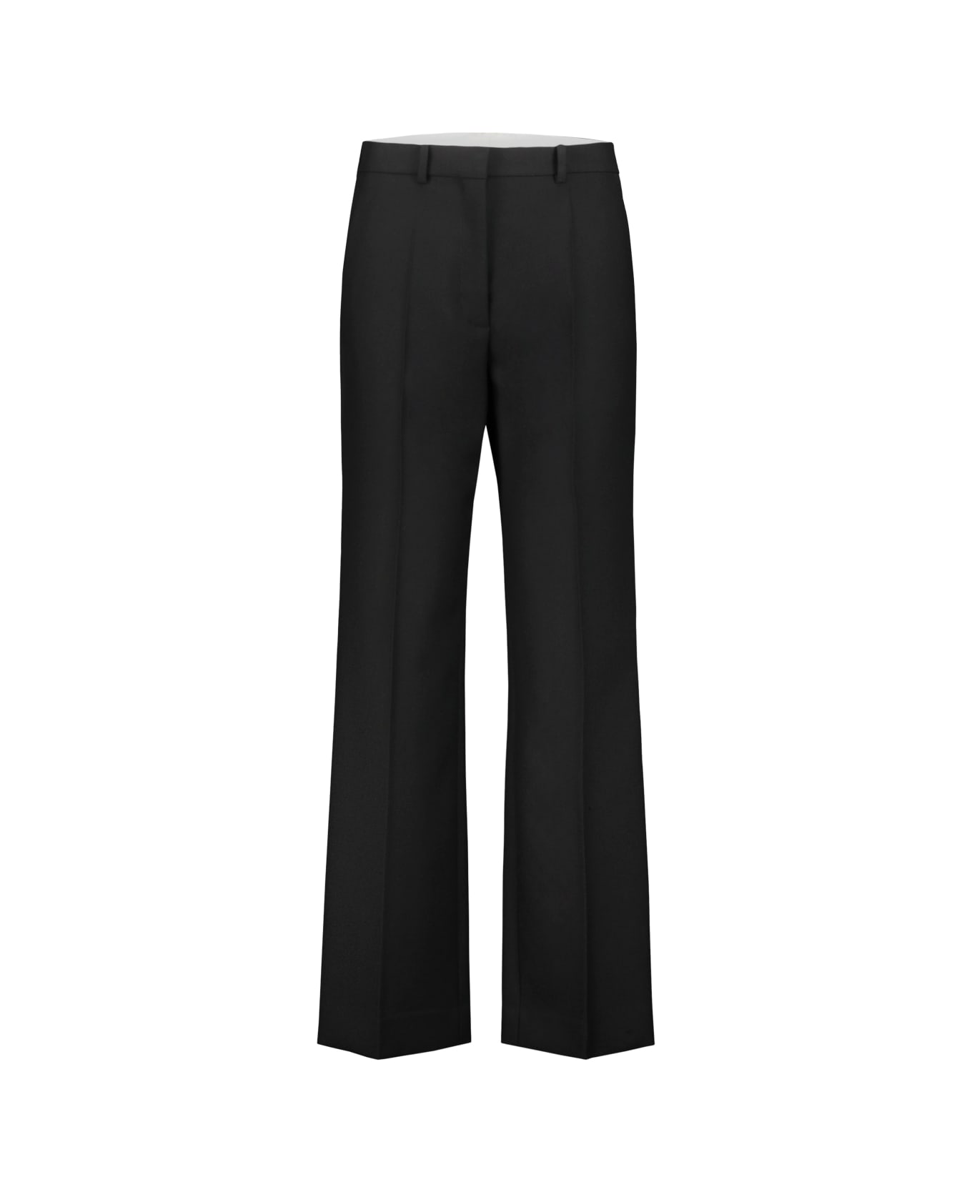 The Row Tailored Alberta pant in fluid wool tricotine with pressed front and back creases, side slash pockets, and slightly flared hem. GTIN code: 8197W2859BLK