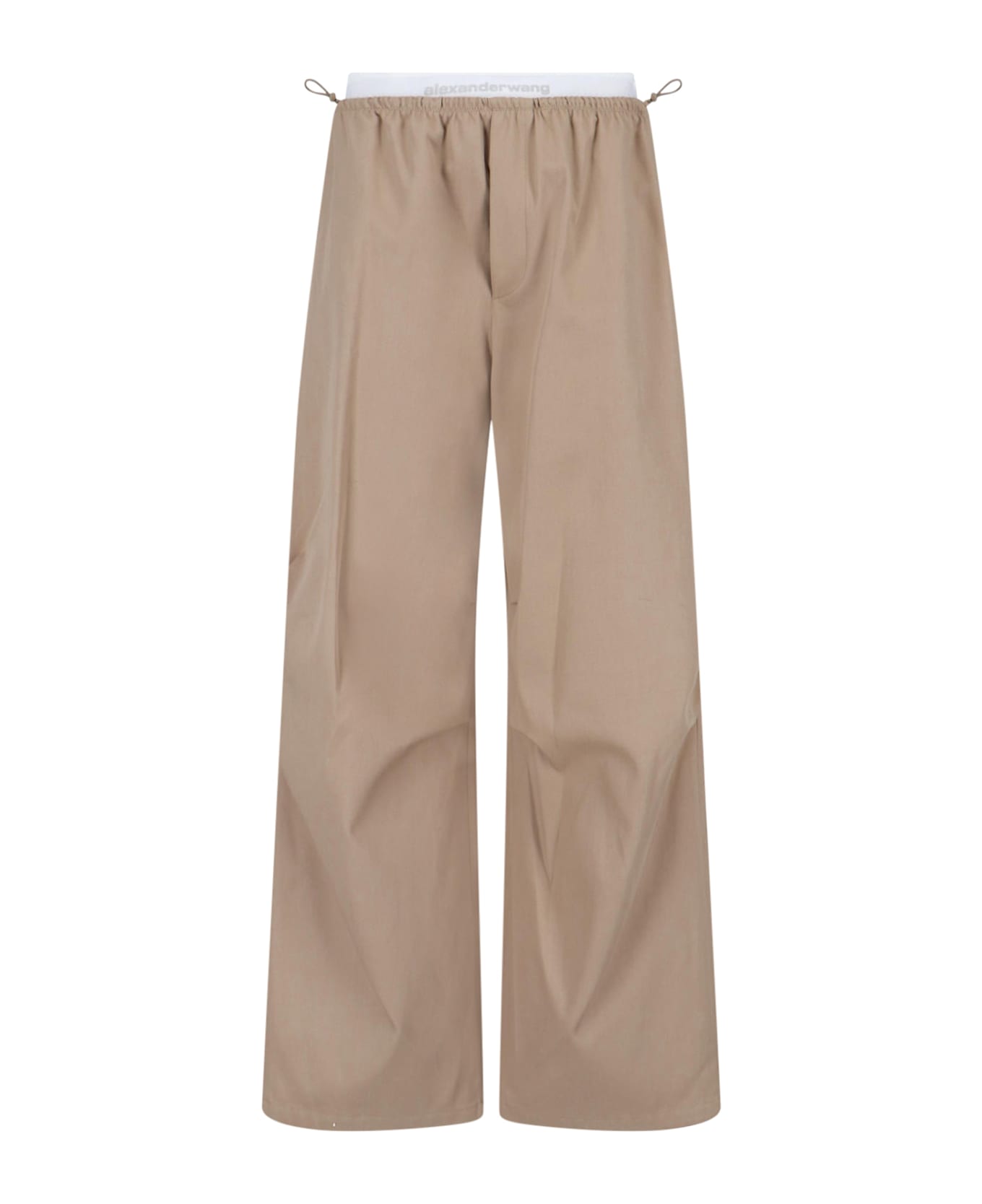 Alexander Wang cotton pants, Taupe, medium waist, adjustable drawstring at the waist, logo lettering waistband, two side zip pockets, Ambia leg. Composition: 100% Cotton