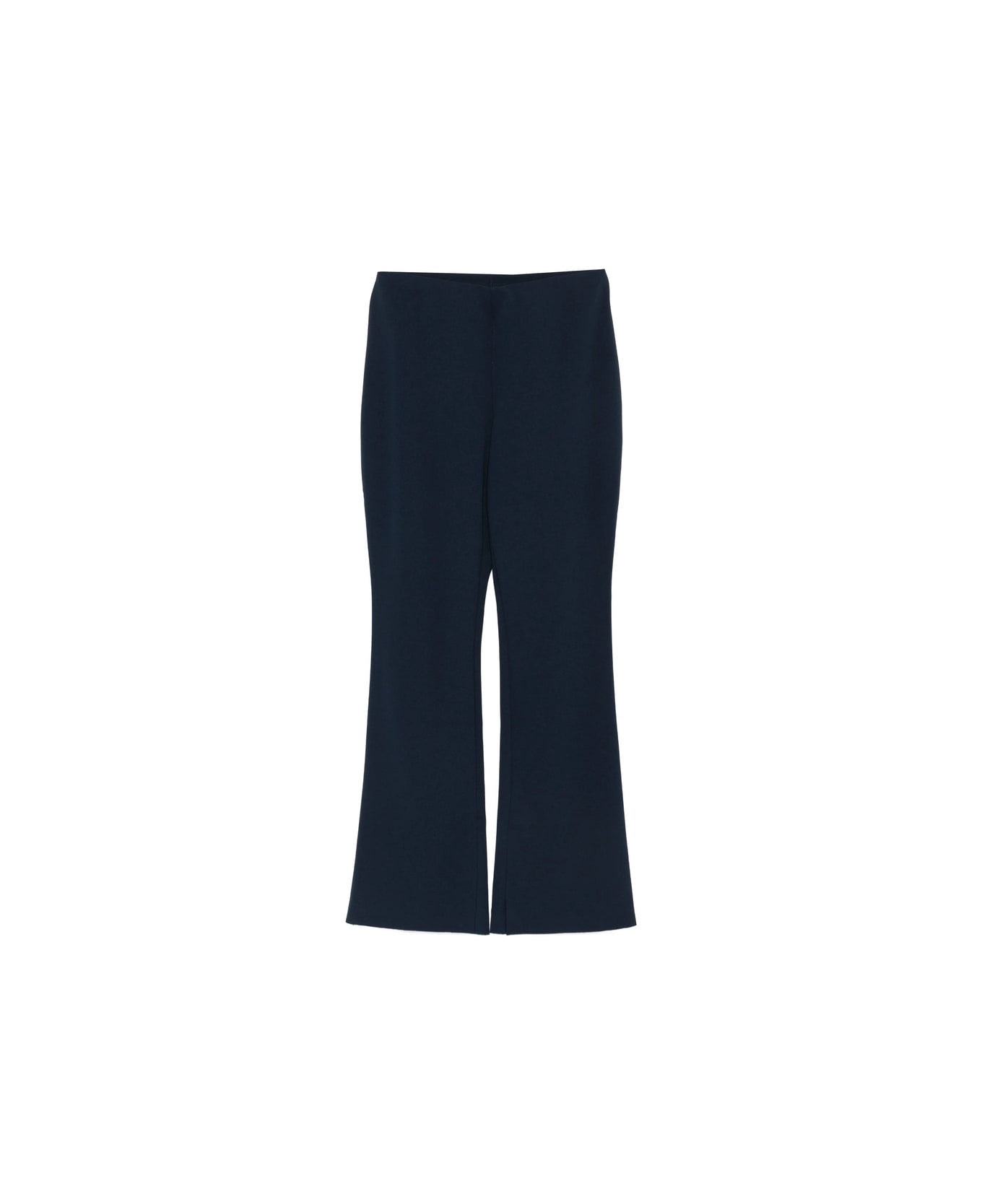 dark sapphire blue flared leg high waist pull-on style straight pockets flat front