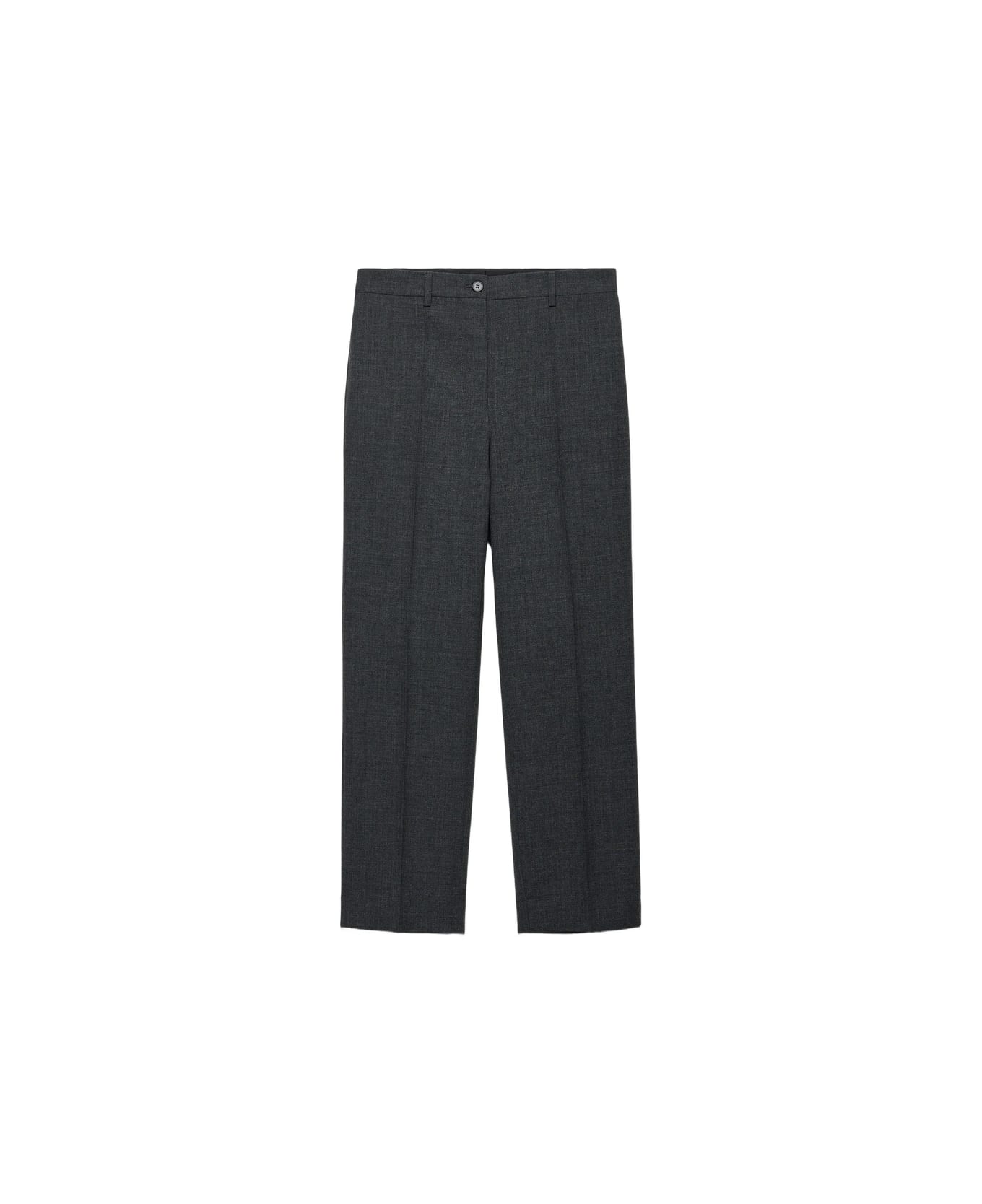 grey pleated front zip fly button fastening side pockets welt pockets