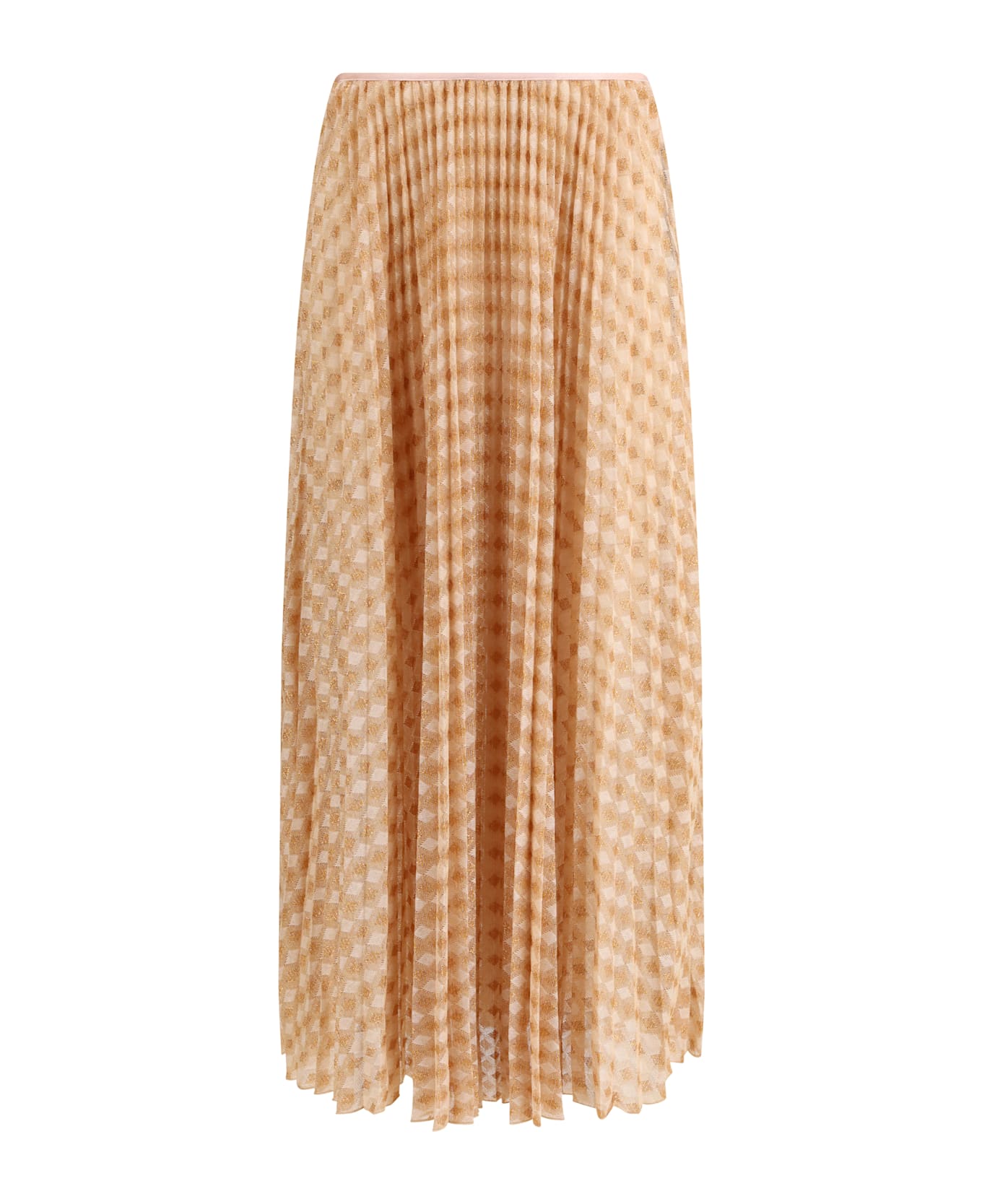 The diamond jersey pleated skirt by forte forte moves with effortless grace, shimmering softly thanks to the subtle lurex thread woven into the fabric. the soleil pleating creates a fluid volume that gently widens toward the hem, expressing a refined and dynamic elegance. a slim elasticated waistband ensures comfort and ease, making this piece a perfect balance of lightness, movement, and understated sophistication.