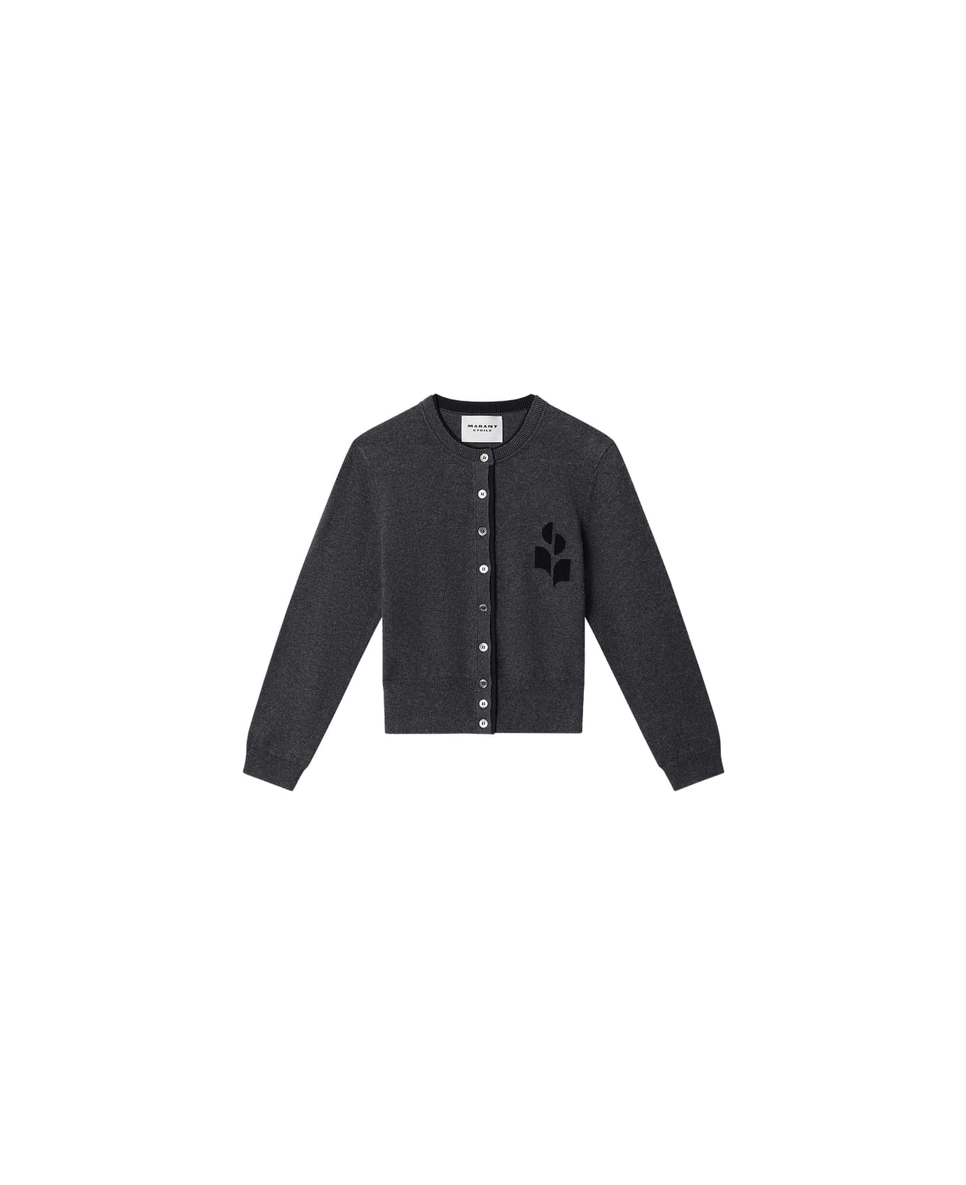 anthracite appliqué detail button fastening round neck ribbed trim long sleeves