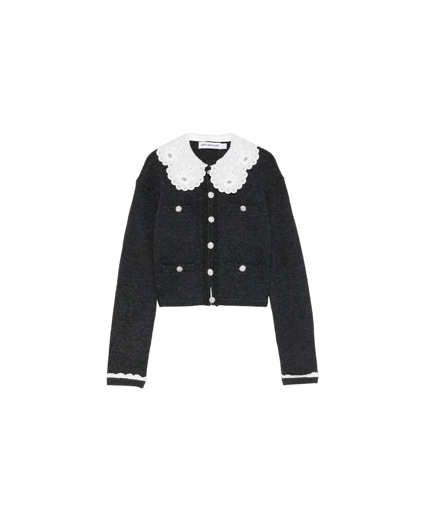 grey lace detailing button fastening scalloped trim long sleeves ribbed cuffs