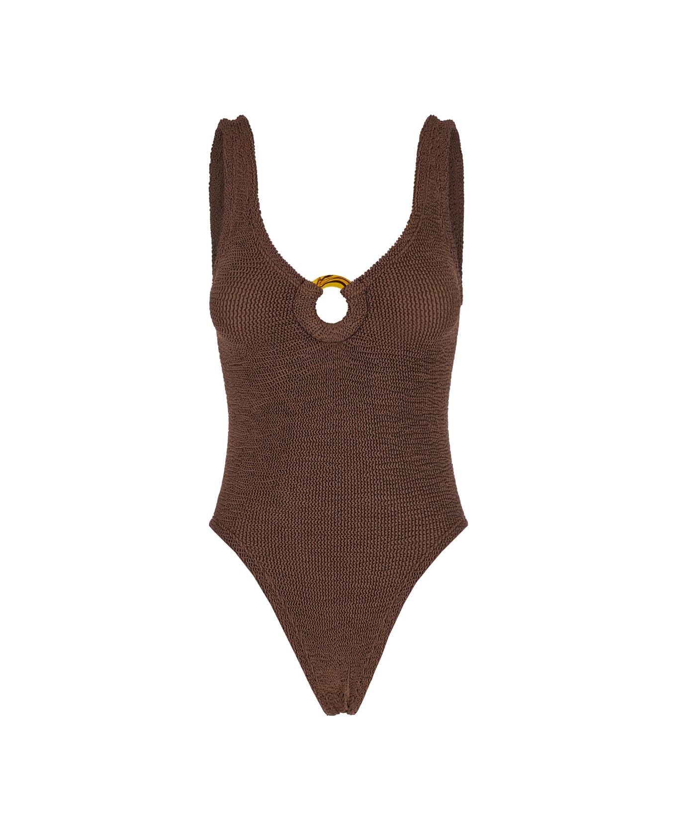 'celine' Brown One-piece Swimsuit With Ring In Elasticized Fabric Woman