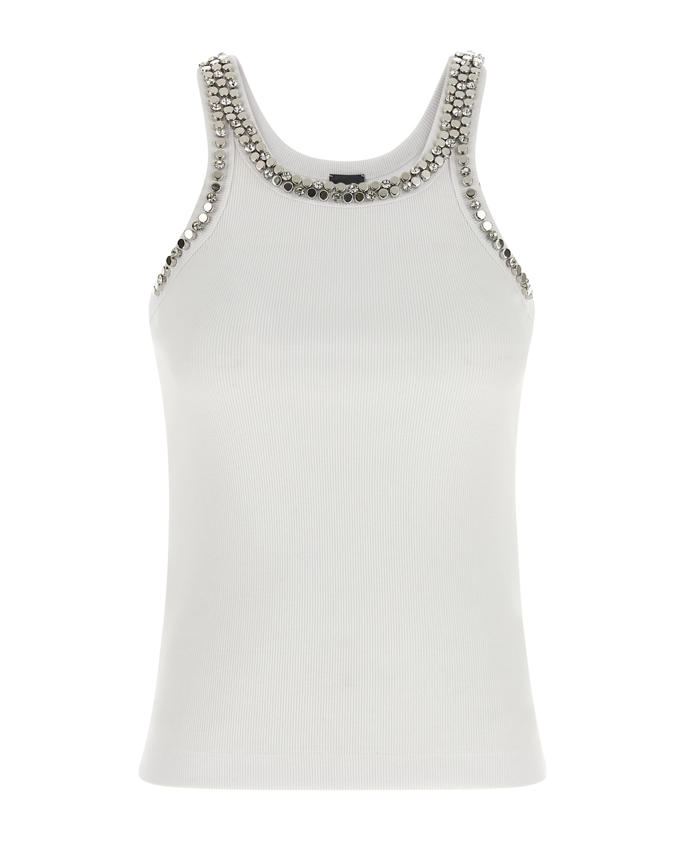 'Coriandoli' tank top in ribbed stretch cotton blend with metal studs and crystal appliqué on the front and back, round neckline, tone-on-tone logo embroidery at the back.