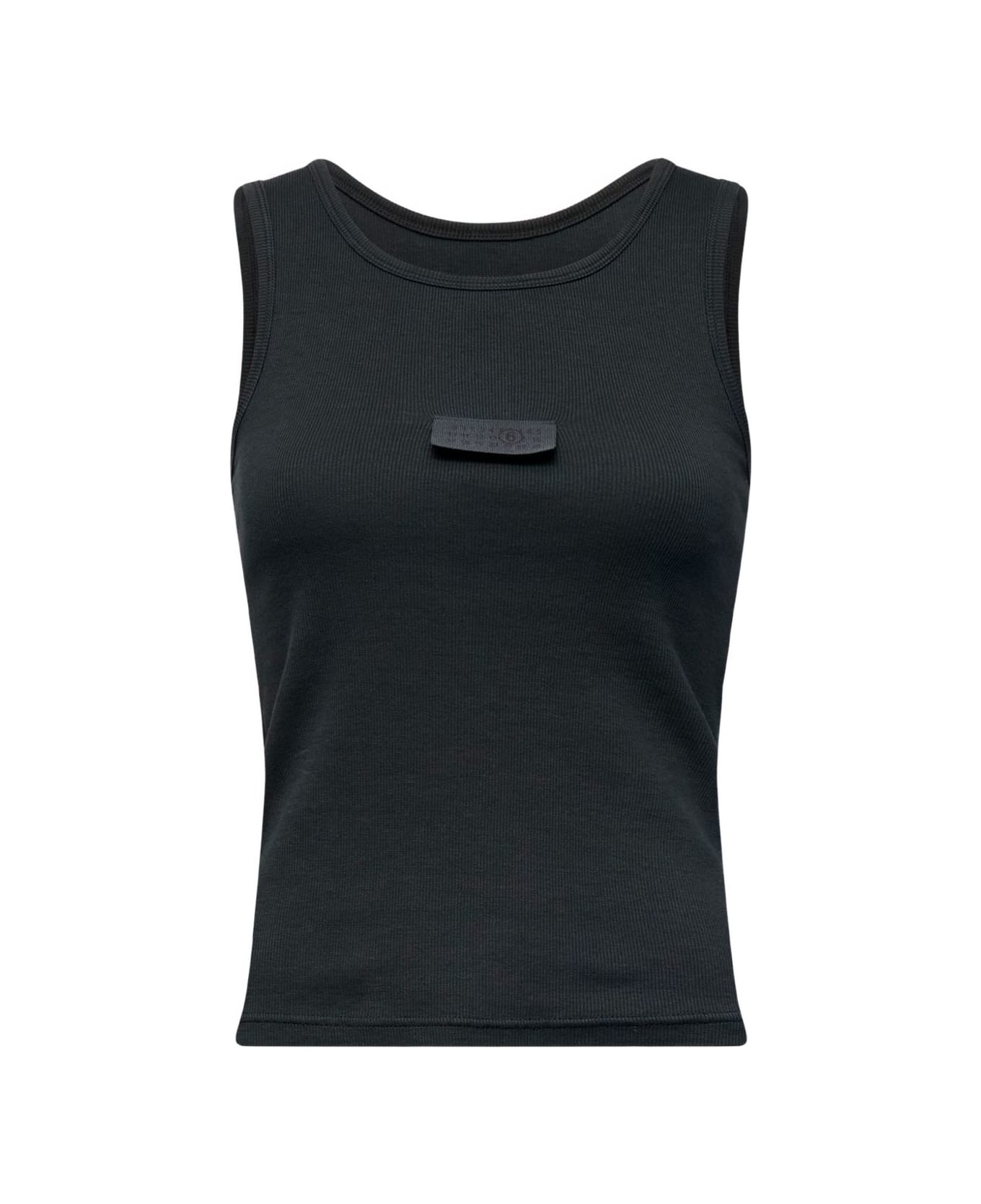black ribbed texture plaque detail round neck sleeveless straight hem Composition: Synthetic->spandex/elastane2. , 0% Natural (veg)->cotton98. , 0%
