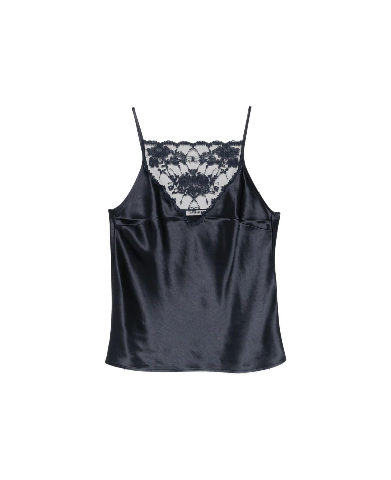 dark blue lace detail thin straps sleeveless straight hem