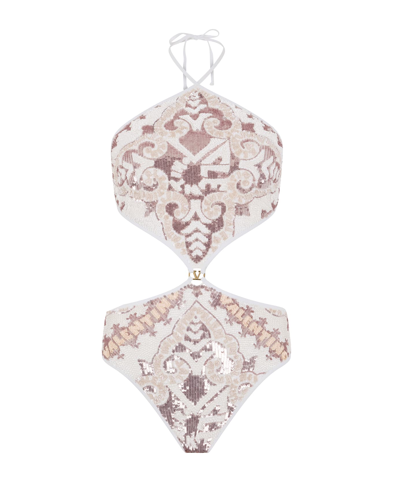 Elegant body with colorful sequin details that create a design and closure with a tie at the back of the neck. this body is perfect for an elegant and refined look. 70% polyamide, 30% coolmax polyester Composition: 70% % Polyamide, 30% % Coolmax Polyester