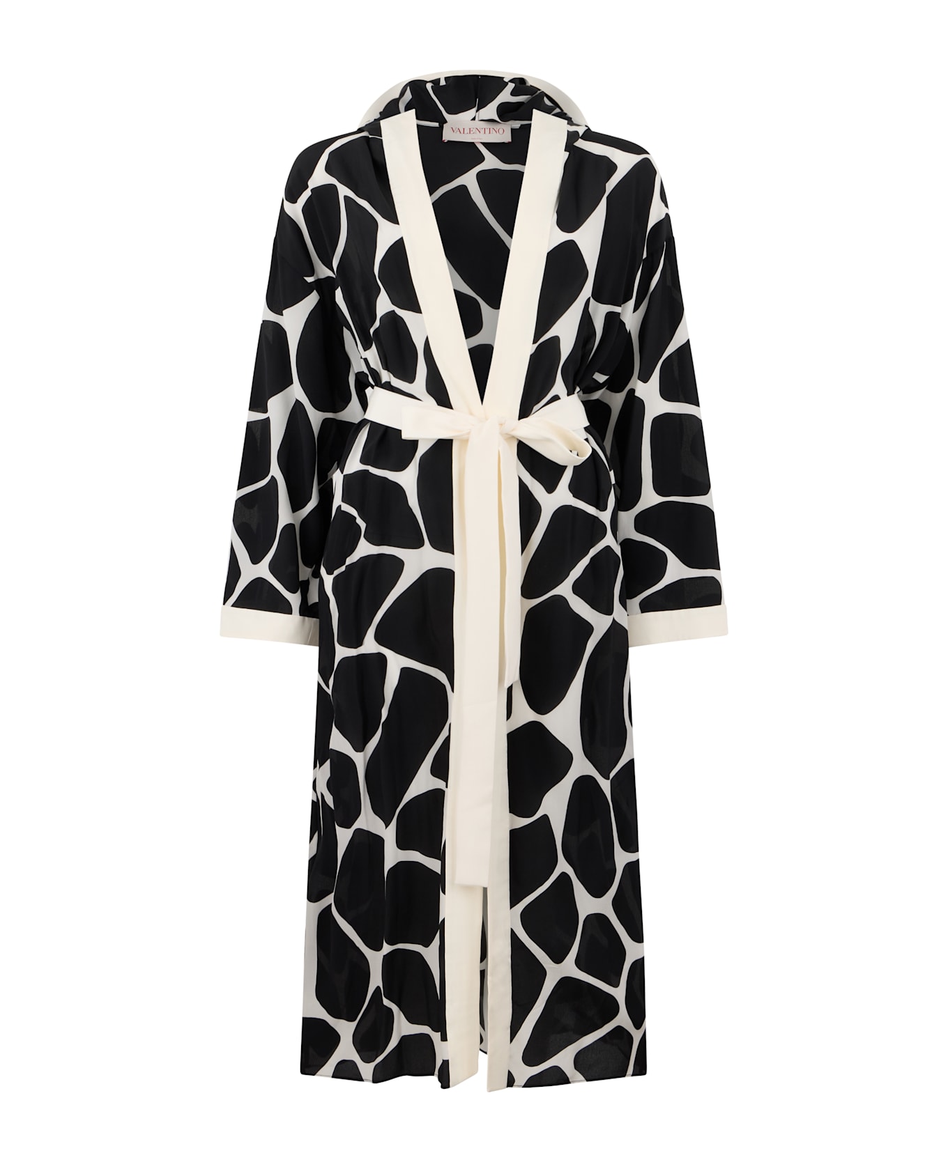 Comfortable and refined, this bathrobe features an original design with a strong visual impact. made from soft fabric, it offers comfort and warmth. equipped with long sleeves and a waist belt, it is perfect for moments of relaxation at home. the contrast between the black and the white details adds an elegant touch, making this piece a must-have for your home wardrobe. 100% silk Composition: 100% % Silk