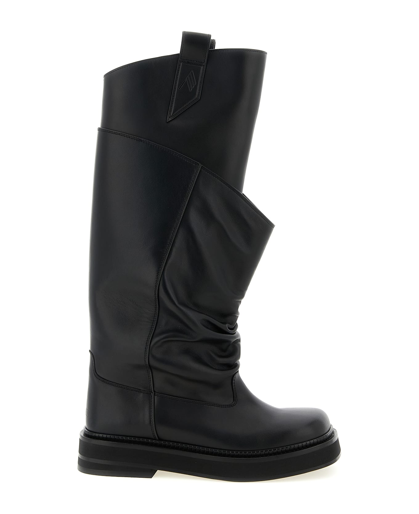 'Robin Passeggiata' calf leather boot, square toe, Combat model, double layer construction with draped front, embossed logo on the heel, rubber sole. Composition: 100% calfskin leather (Bos Taurus)