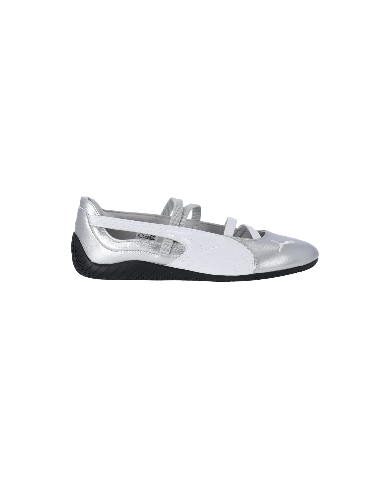 Sneakers "Speedcat Ballet" by Puma in silver calf leather, round toe, elastic bands, "Puma cat" logo on the side, rubber sole. Composition: 100% Leather