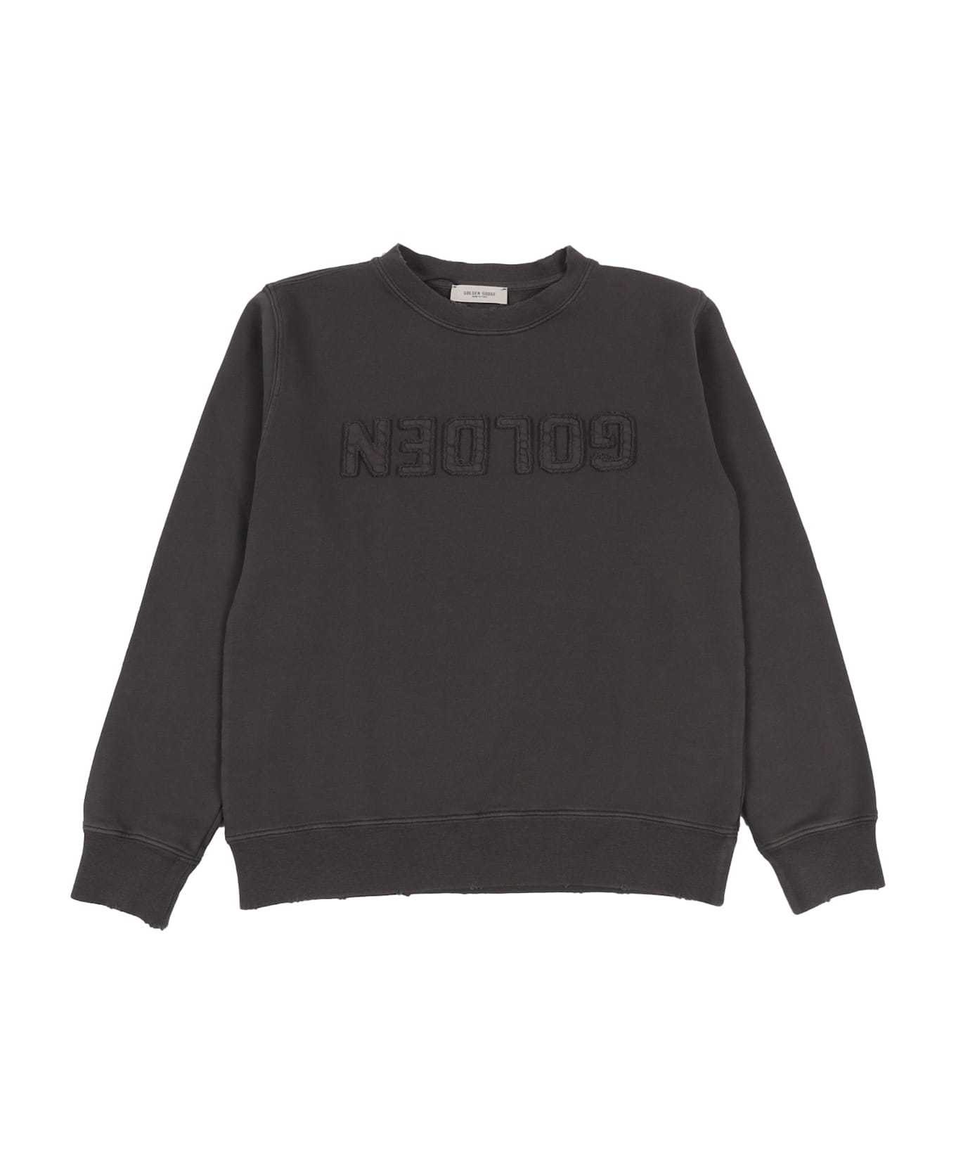 GOLDEN UNISEX CREW NECK SWEATSHIRT DISTRESSED COTTON FLEECE WITH LOGO Composition: 100% COTTON RIB 98% COTTON 2% SPANDEX