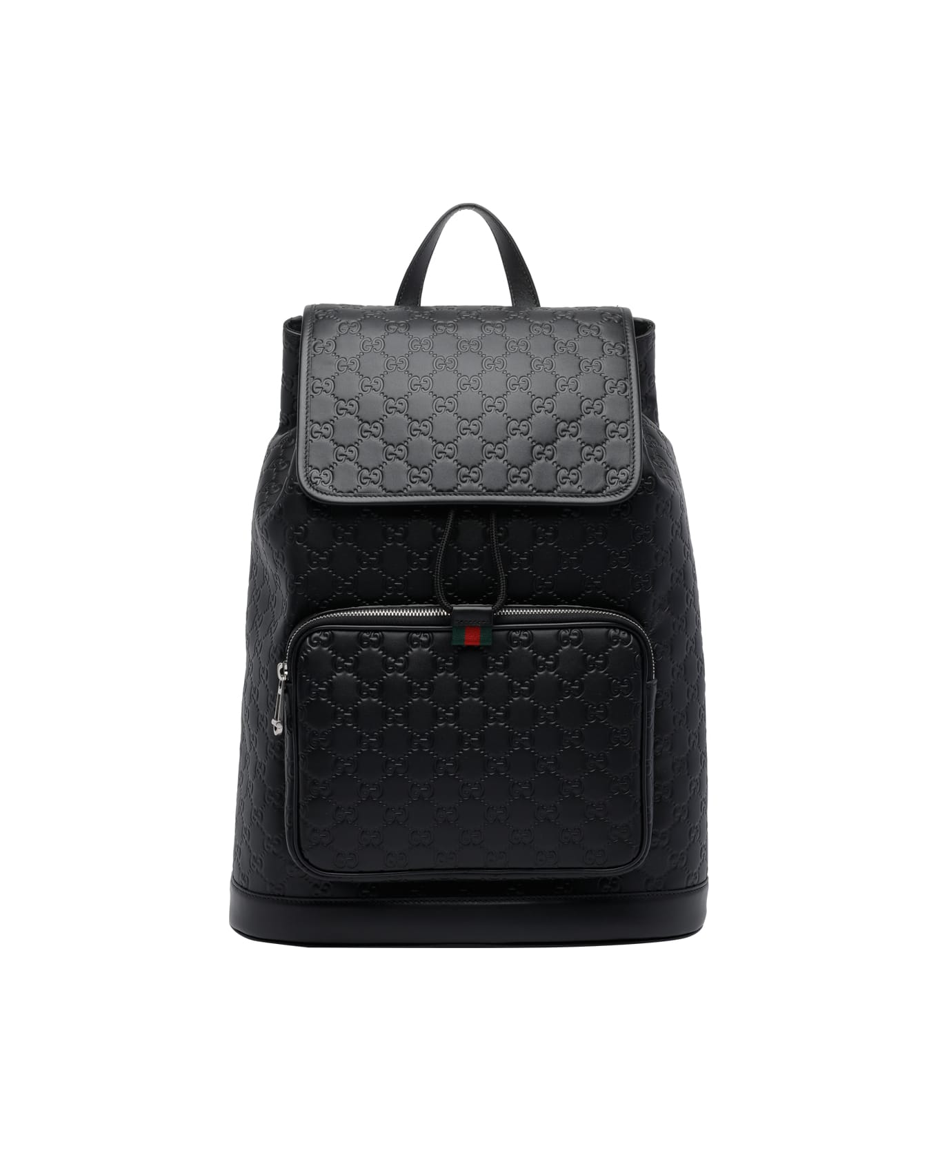 Gucci black Medium GG emblem backpack, magnetic and coulisse closure, inner laptop pocket, 1 handle, adaptable straps, tone on tone GG logo allover Composition: 100% Calf Leather