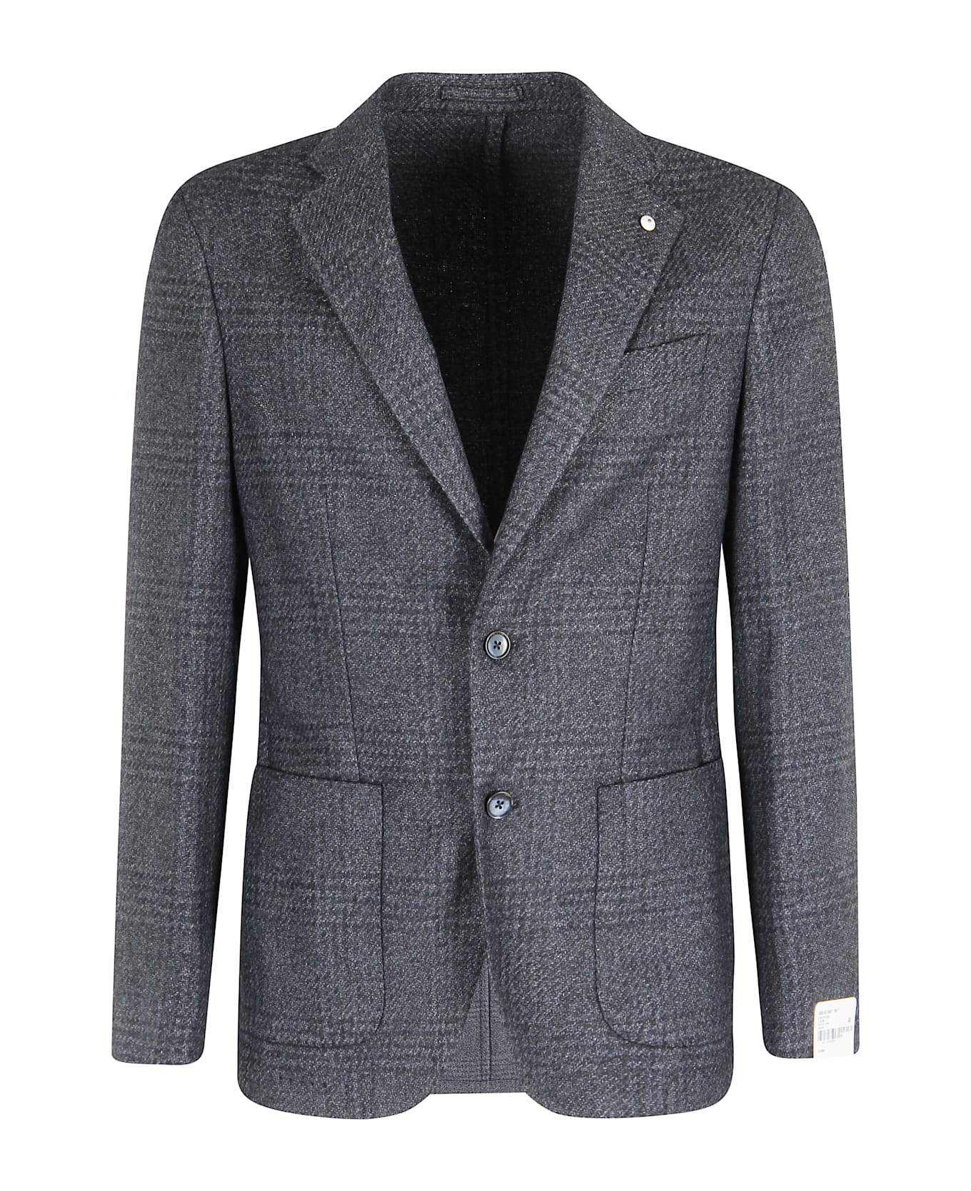Jack jacket - L. B. M - Dark blue color - Wool-blend fabric - Reverse neckline - Patch side pockets - Single-breasted button closure - Double back slit