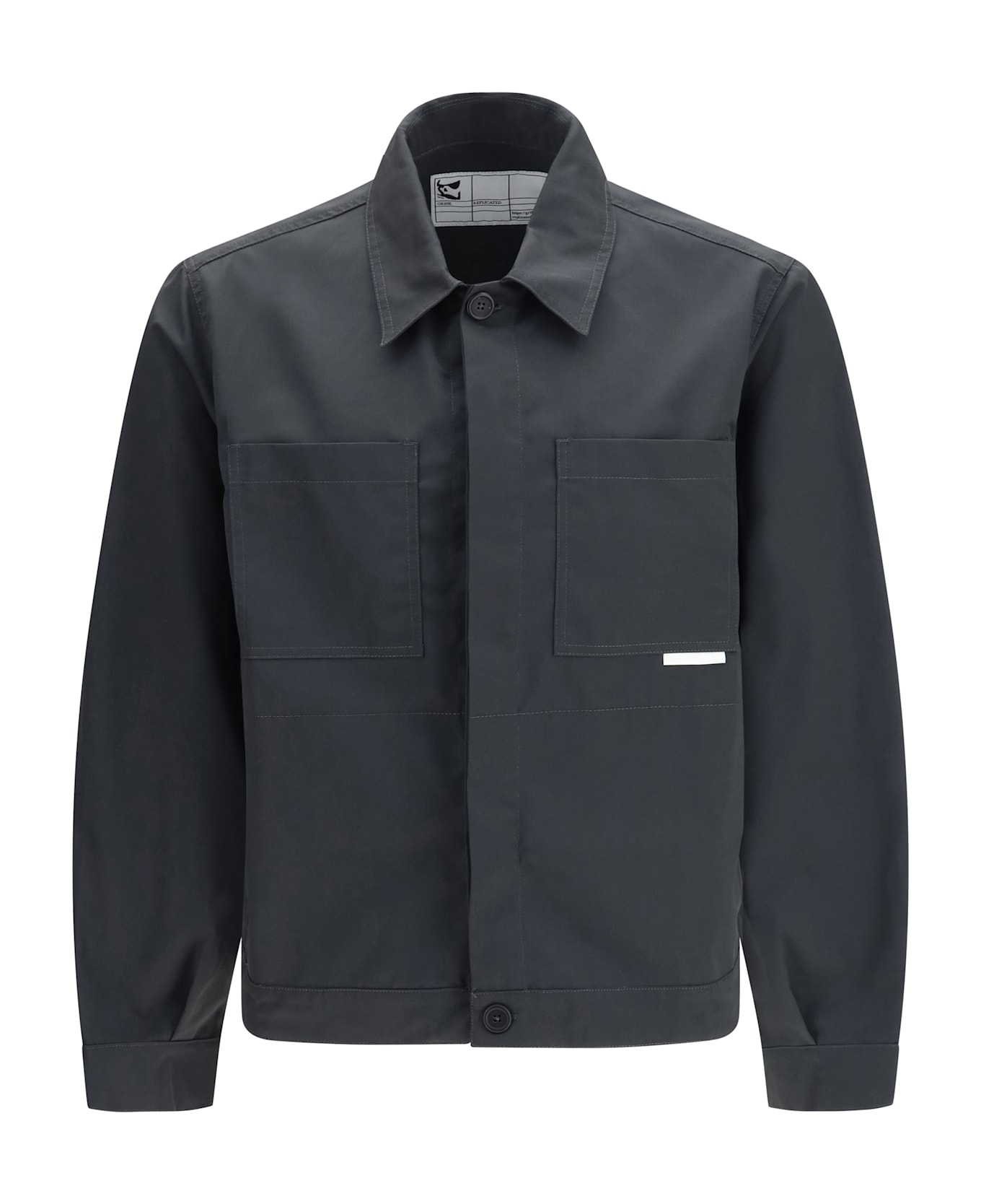 The 40000 replicated short jacket by gr10k is conceived as a serial stress-test on design, indexed as void value. replicated is a non-designed set of pieces, autonomous from trends, seasonal moods, or collections, continuing the original 0 collection that formed the foundation of the brand. this short jacket is crafted from poly-cotton drill and features a regular fit. it includes a classic collar, concealed button closure, two flap chest pockets, a replicated label, adjustable cuffs, and a straight hem. made in italy.