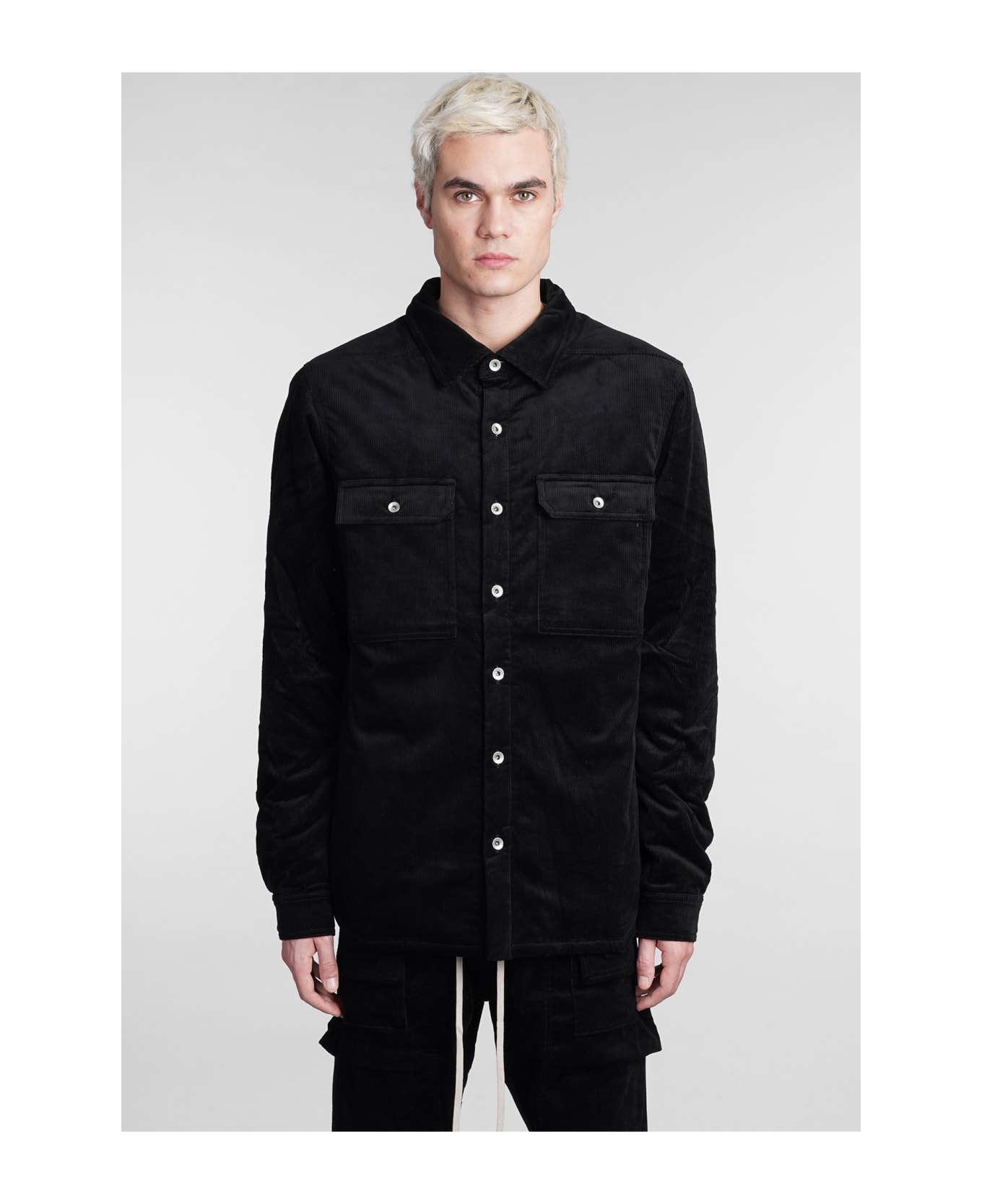 Outeshirt Casual jacket in black cotton, collar, flap pockets, frontal buttoning, long sleeves, ribbed knit, 97% Cottone 3% Spandex, Made in Italy, Model is 1. 83 and wears size M