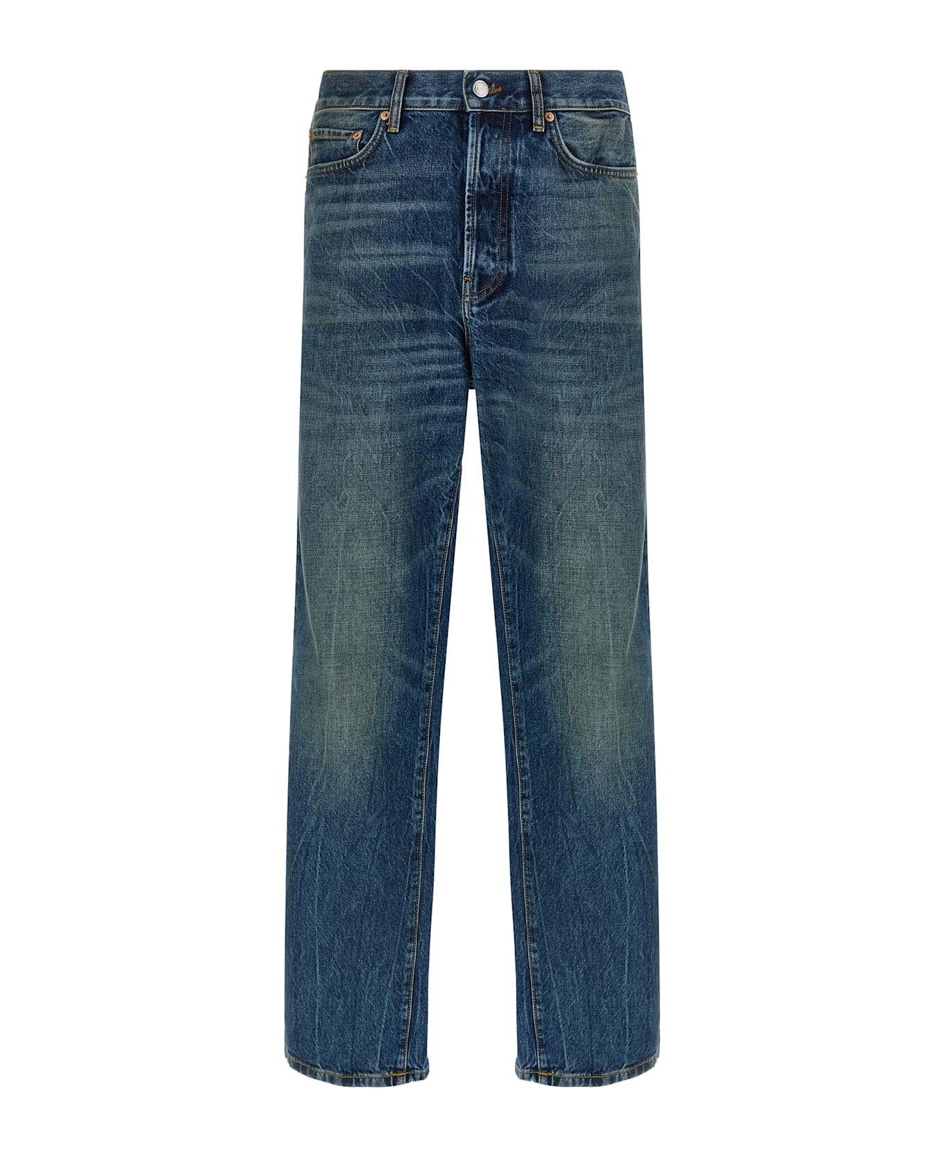 Curtis' used-effect stone washed cotton denim jeans with side inserts, contrast stitching, front button closure, five pockets, straight leg, back logo tag. Composition: 100% cotton