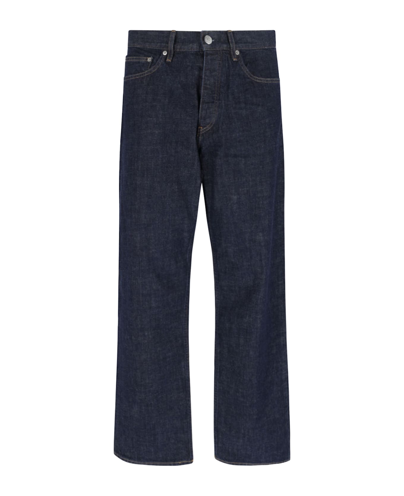 Sunflower straight jeans in navy blue denim with mid waist, belt loops, button closure, five pockets, logo patch on the back, straight leg. Composition: 100% Cotton