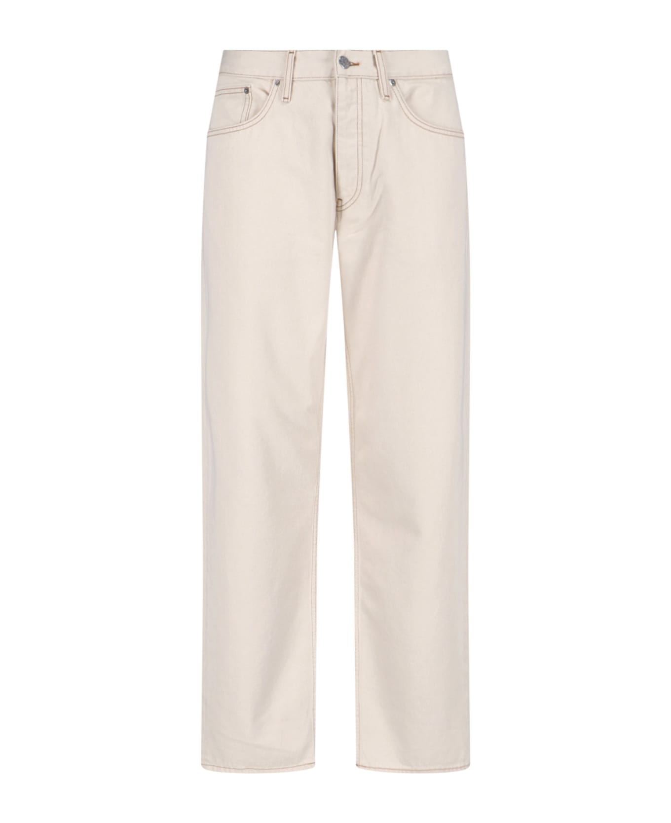 Sunflower straight jeans in cream cotton denim with mid waist, belt loops, five-pocket design, button and zip closure, leather logo patch on the back, straight leg. Composition: 100% Cotton