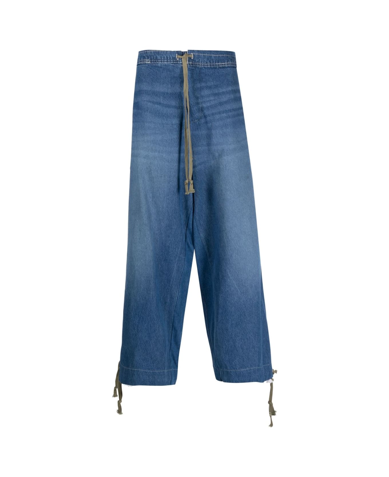 hybrid loose-fit drawstring jeans from GREG LAUREN featuring ocean blue, cotton, mid-wash, denim, drawstring fastening waist, mid-rise, wide leg, side zip fastening, two diagonal pockets to the sides, two rear patch pockets and drawstring cuffs. We've partnered with Good On You an independent agency that rates how brands perform in relation to their impact on the planet, people and animals, with a multi-criteria rating simplified to a five points scale. In order to be awarded our conscious label, larger brands need to score a minimum of four out of five ('Good'), while smaller brands must score at least three out of five ('It's a start'). This item comes from a brand rated four out of five ('Good') by Good on You. Please note, this is a brand-level rating and does not guarantee that this product is made with conscious materials.. Learn more about what makes a product Conscious on our Conscious Criteria page.