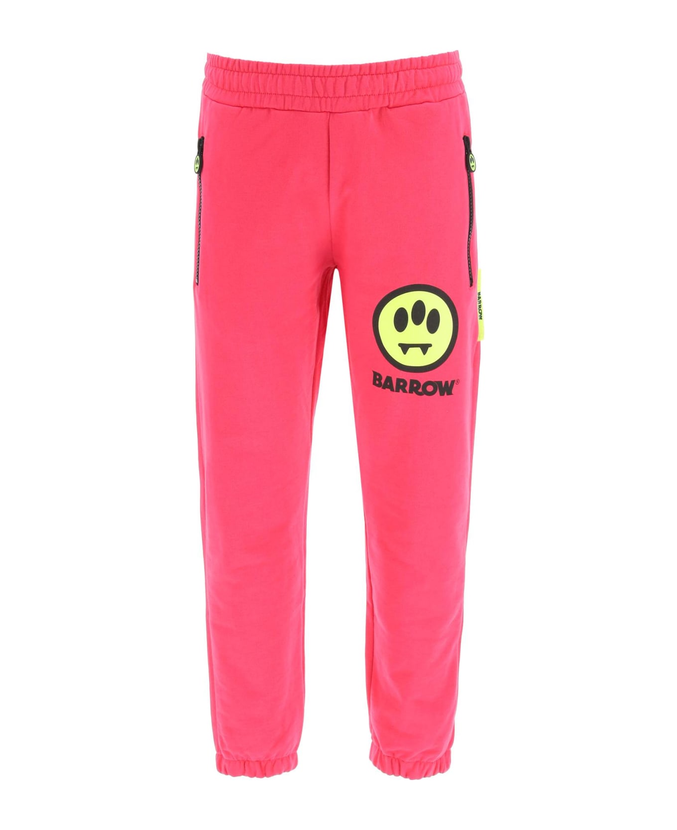 Barrow sweatpants in cotton French terry with Smiley and logo printed on the front. Elasticated waist with internal drawstring, side zip pockets, elasticated cuffs. Neon logo label on the side, iridescent logo on the back. Unisex. The model is 185 cm tall and wears a size M.